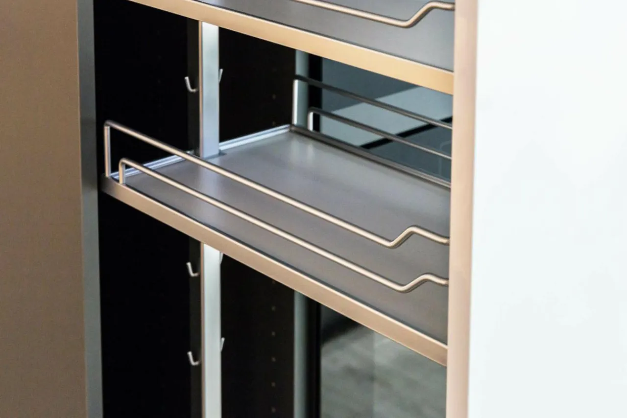 Dzięki prowadnicom pełnego wysuwu oraz systemowi cichego domyku obsługa półek cargo jest przyjemna i komfortowa.