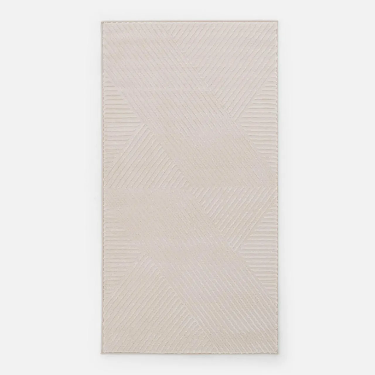 Dywan dzięki połączeniu długiego i krótkiego włosia tworzy efekt 3D mieniący się odcieniami kremu.