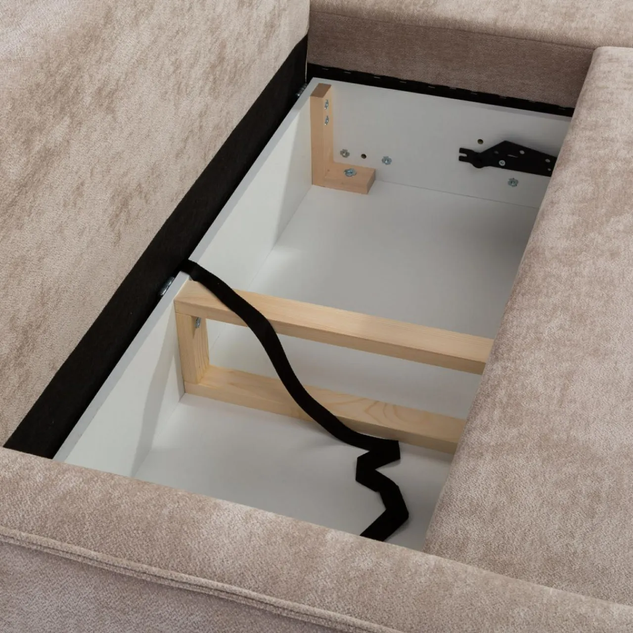 - Pojemnik pod siedziskiem da Ci przestrzeń na komplet pościeli lub inne domowe tekstylia.