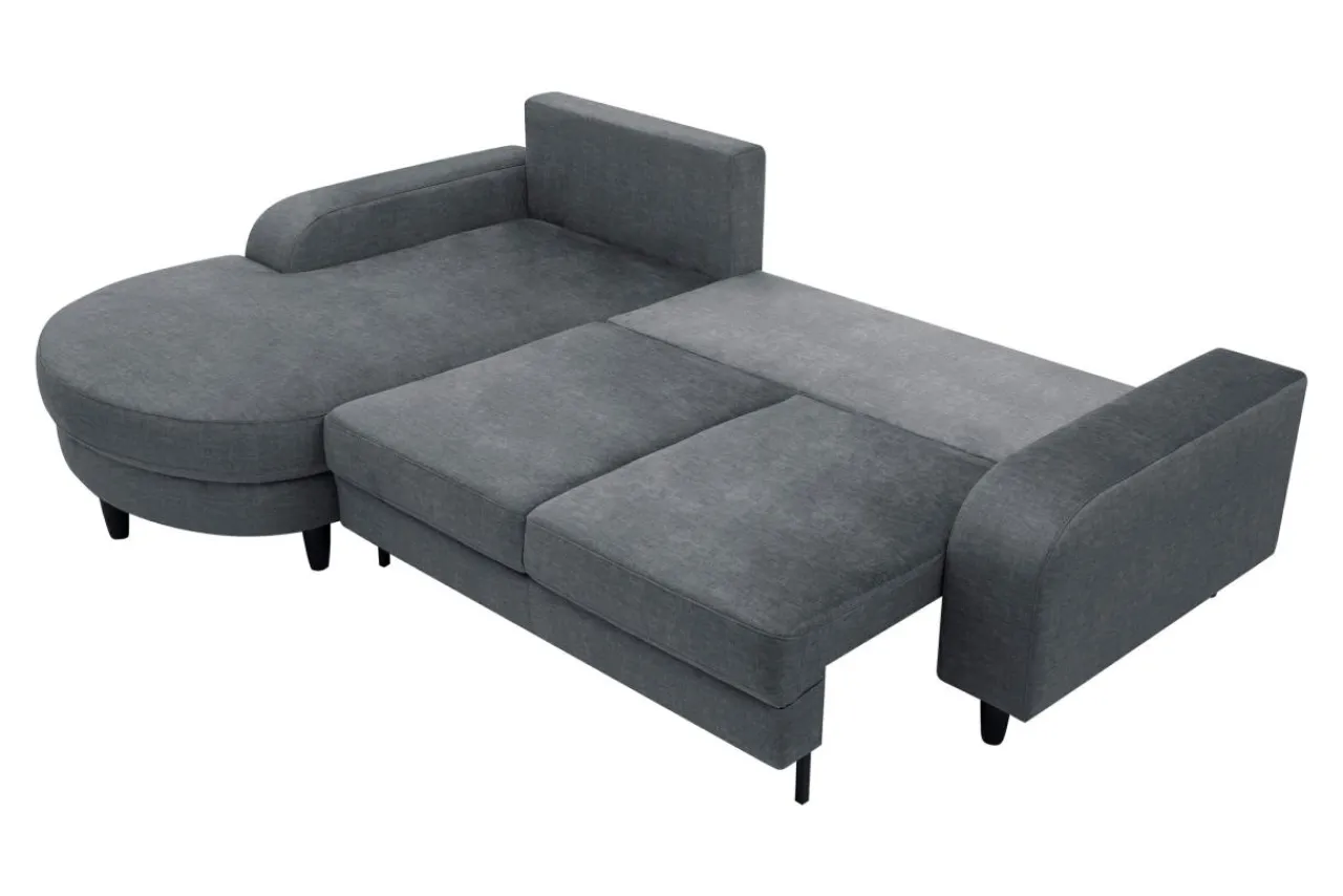 - Po rozłożeniu narożnika uzyskasz komfortową powierzchnię spania o wymiarach 136×228 cm, która pomieści nawet wysokie osoby.