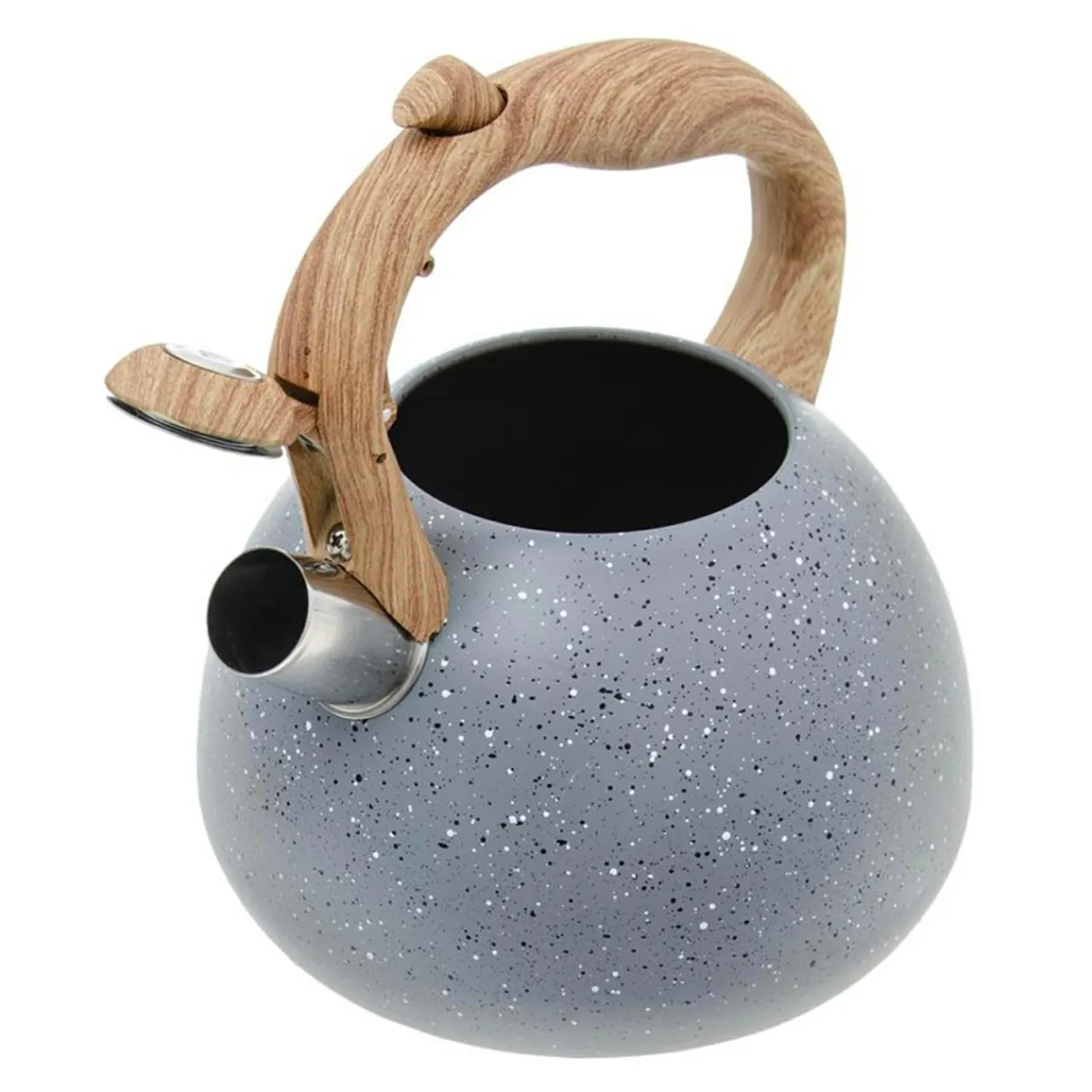 Wykonany z wysokiej jakości stali nierdzewnej czajnik RENZO, w gustowny sposób uzupełni podstawowe wyposażenie kuchni . Rączka wykonana z tworzywa imitującego drewno, zapewnia pewny chwyt, oraz tworzy ciekawe zestawienie z matową powłoką przypominającą granit.