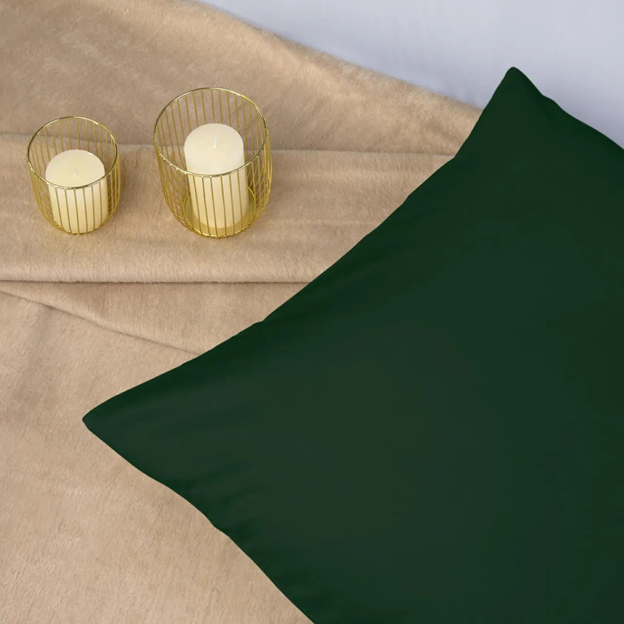 Odcień butelkowej zieleni możesz wykorzystać w nowoczesnym wnętrzu. Gładki wzór sprawdzi się również w minimalistycznej aranżacji. Wystarczy jedna poszewka na tle kremowej ściany – nienachalnie podkreśli elegancką przestrzeń.