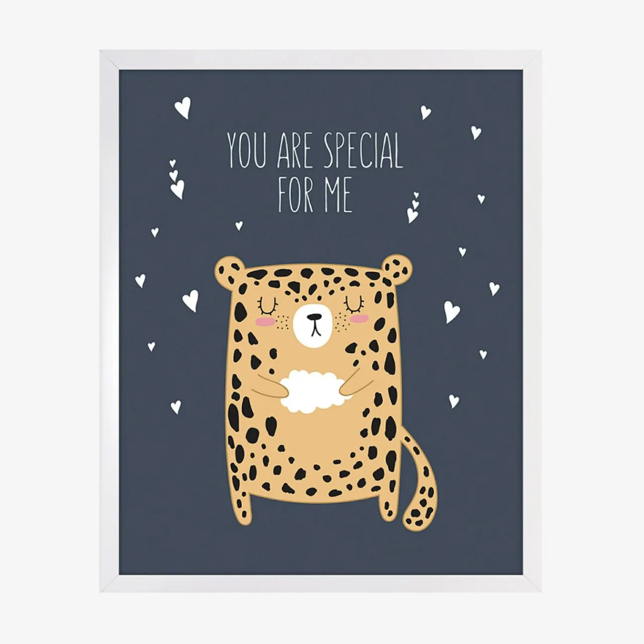 Obraz dla dziecka PANTHER o wymiarach 40×50 cm będzie ładnie wyglądał przy białych meblach i jasnym drewnianym łóżeczku. Możesz go też powiesić nad szafą czy stoliczkiem, przy którym Twoje dziecko lubi się bawić. Obraz ze słodką panterką pomoże stworzyć przytulną atmosferę.