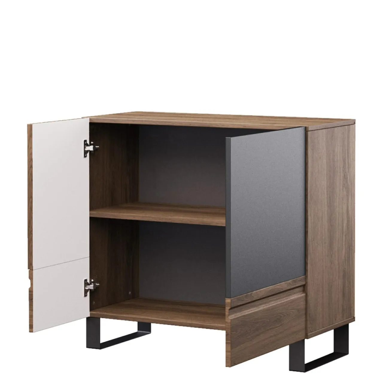 - Rolę nóżek pełnią metalowe profile, które stabilizują mebel.