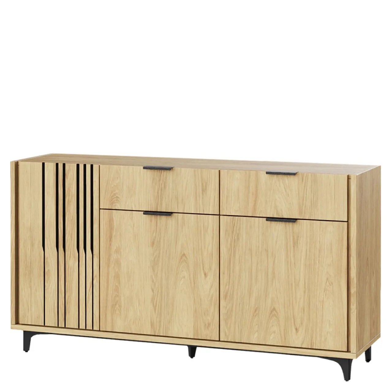 Lamele o nieregularnym rozmieszczeniu oraz wgłębienia w wybranych elementach dodają wyjątkowego wyglądu meblom.