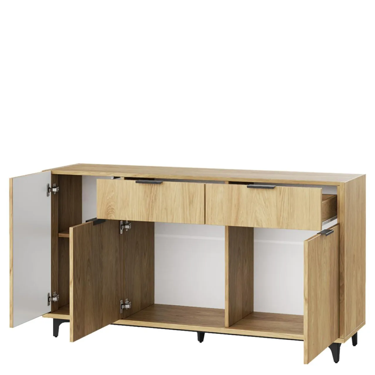 Metalowe elementy w połączeniu z wybarwieniem hikory naturalnej sprawia, że kolekcja SKALA będzie pasowała do aranżacji w stylu loft.