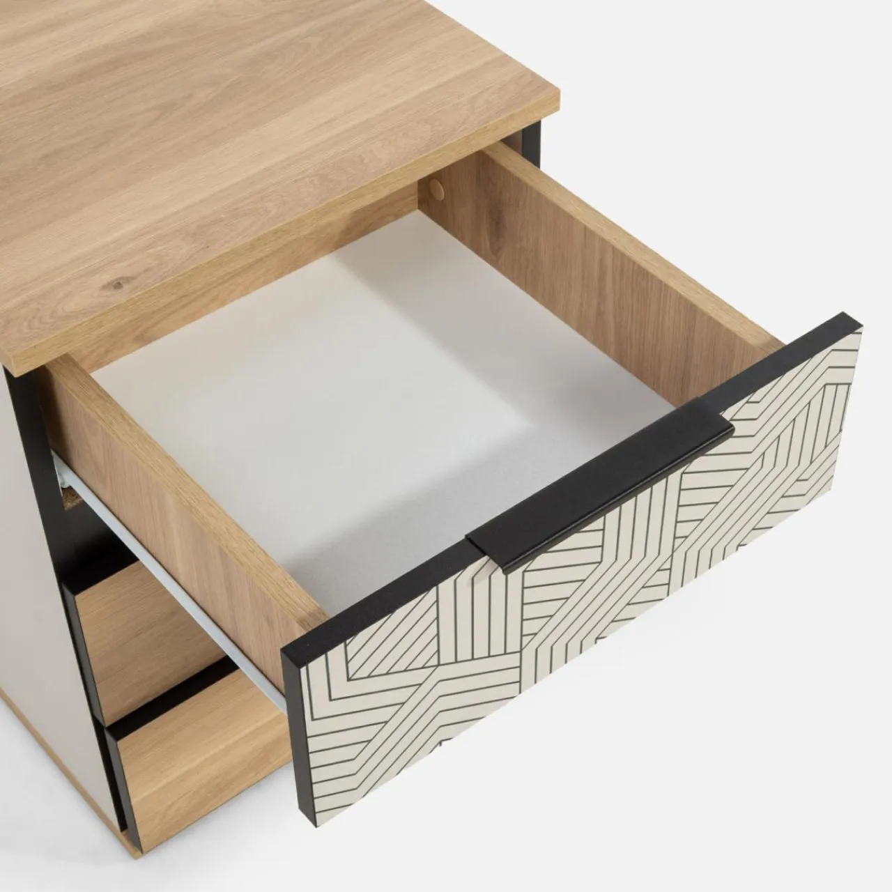- W 3 szufladach oddzielisz schowane przedmioty.