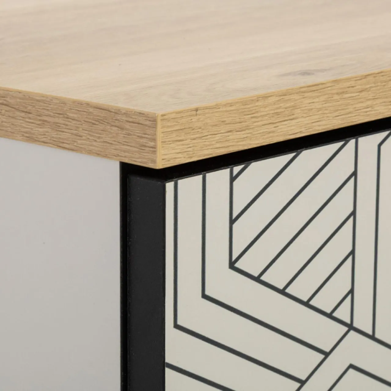 - Modne połączenie dębowego rysunku z kaszmirem przełamuje geometryczny wzór.