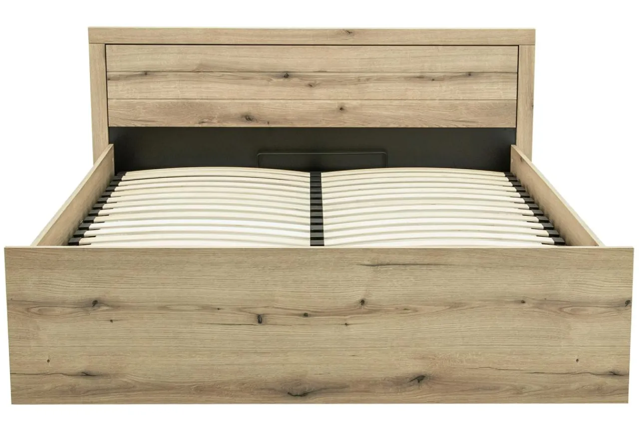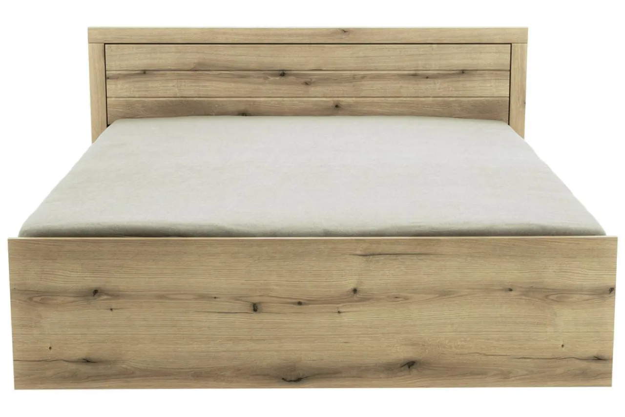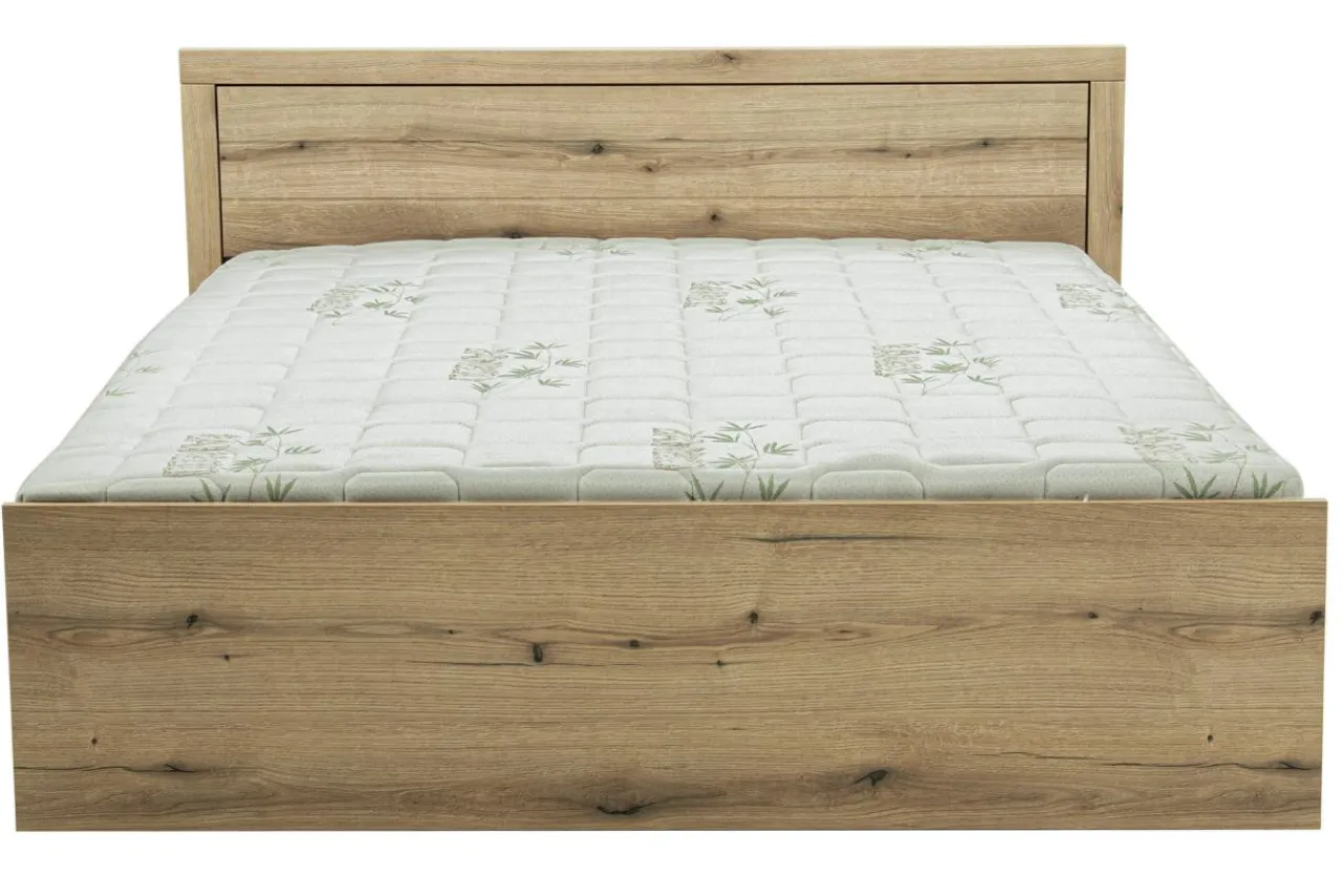 - Rama i wezgłowie wykończone są laminatem oraz folią w kolorze przybrzeżnego dębu o jasnej, sękatej barwie drewna.