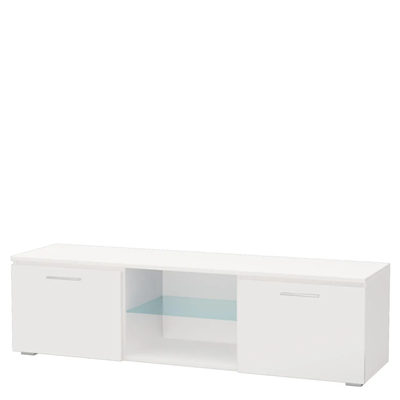 - W szafce znajdziesz 2 zamykane półki, gdzie możesz schować sprzęt oraz okablowanie RTV lub kolekcję płyt DVD.