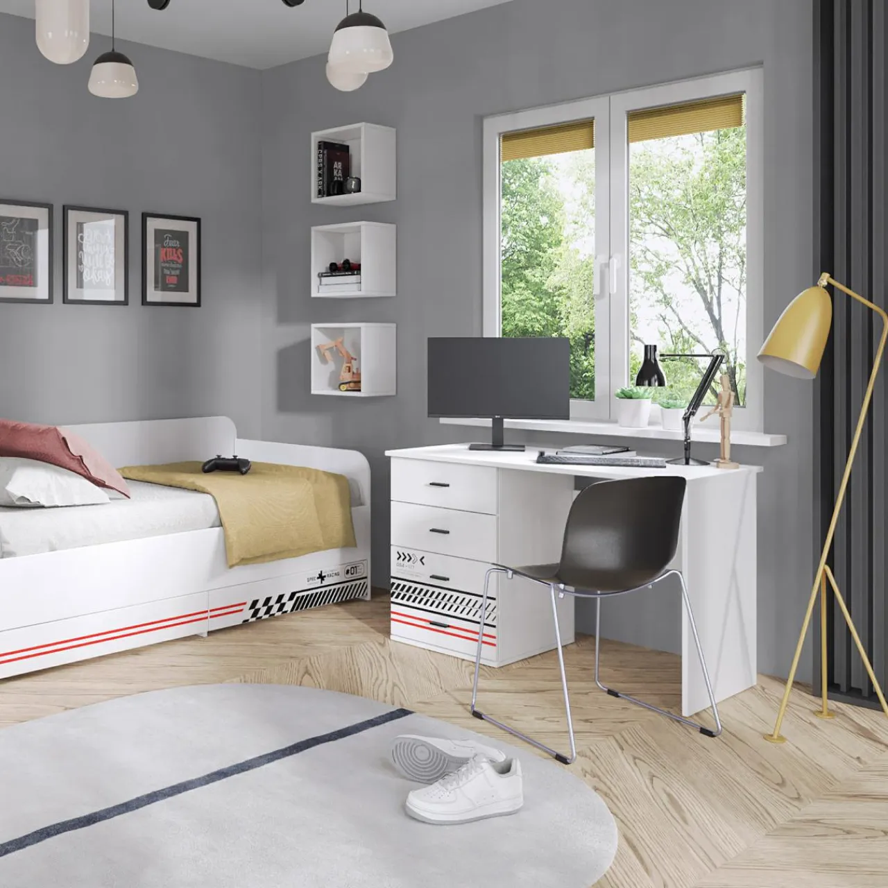 - Białe meble będą neutralnym rozwiązaniem do każdego pokoju dziecięcego i młodzieżowego. Wykończono je laminatem – są łatwe w utrzymaniu czystości.