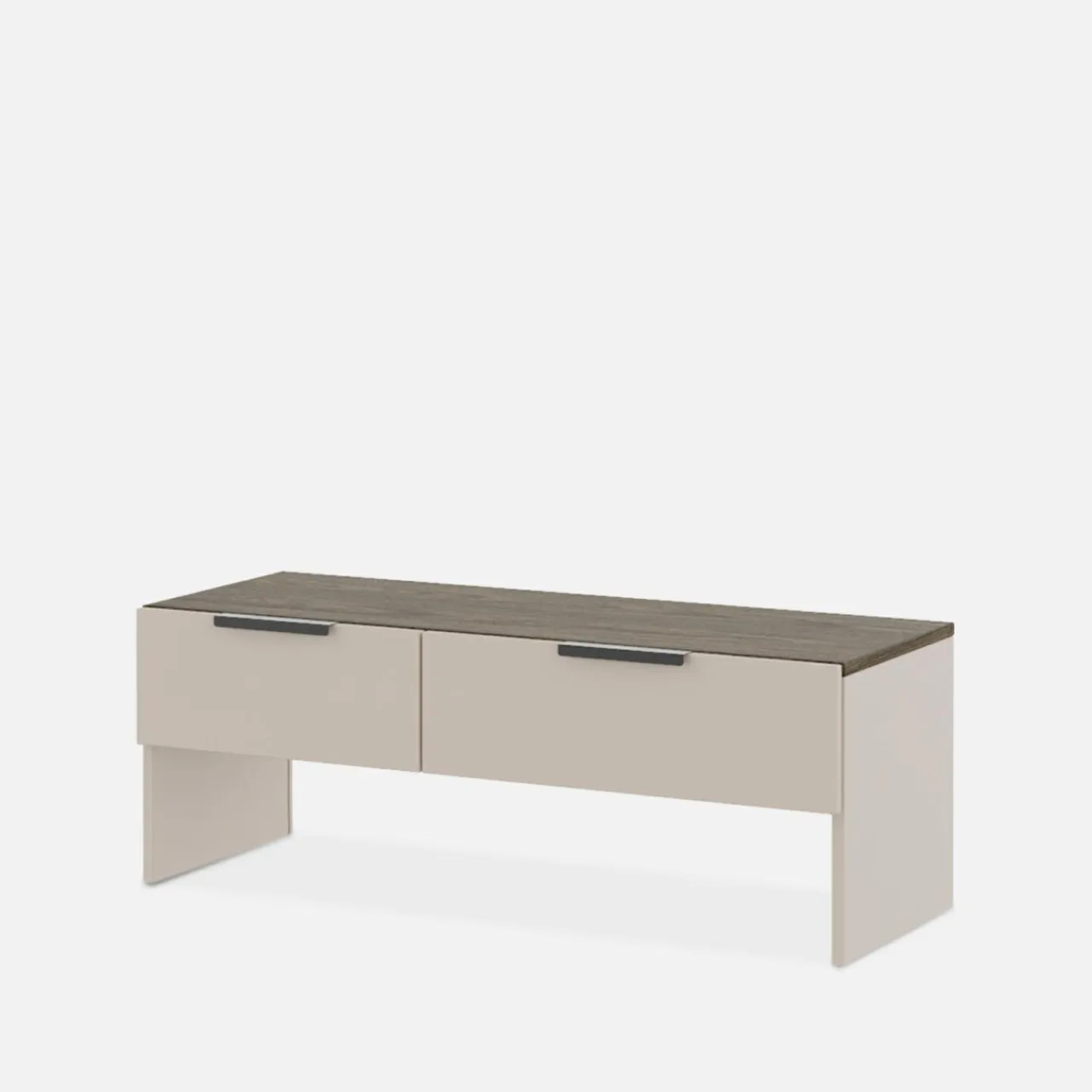 - Meble w odcieniu stone grey to delikatny, beżowy odcień. W połączeniu z ciemnymi elementami w odcieniu dębu windmill stworzą ciepłe i nowoczesne wnętrze.