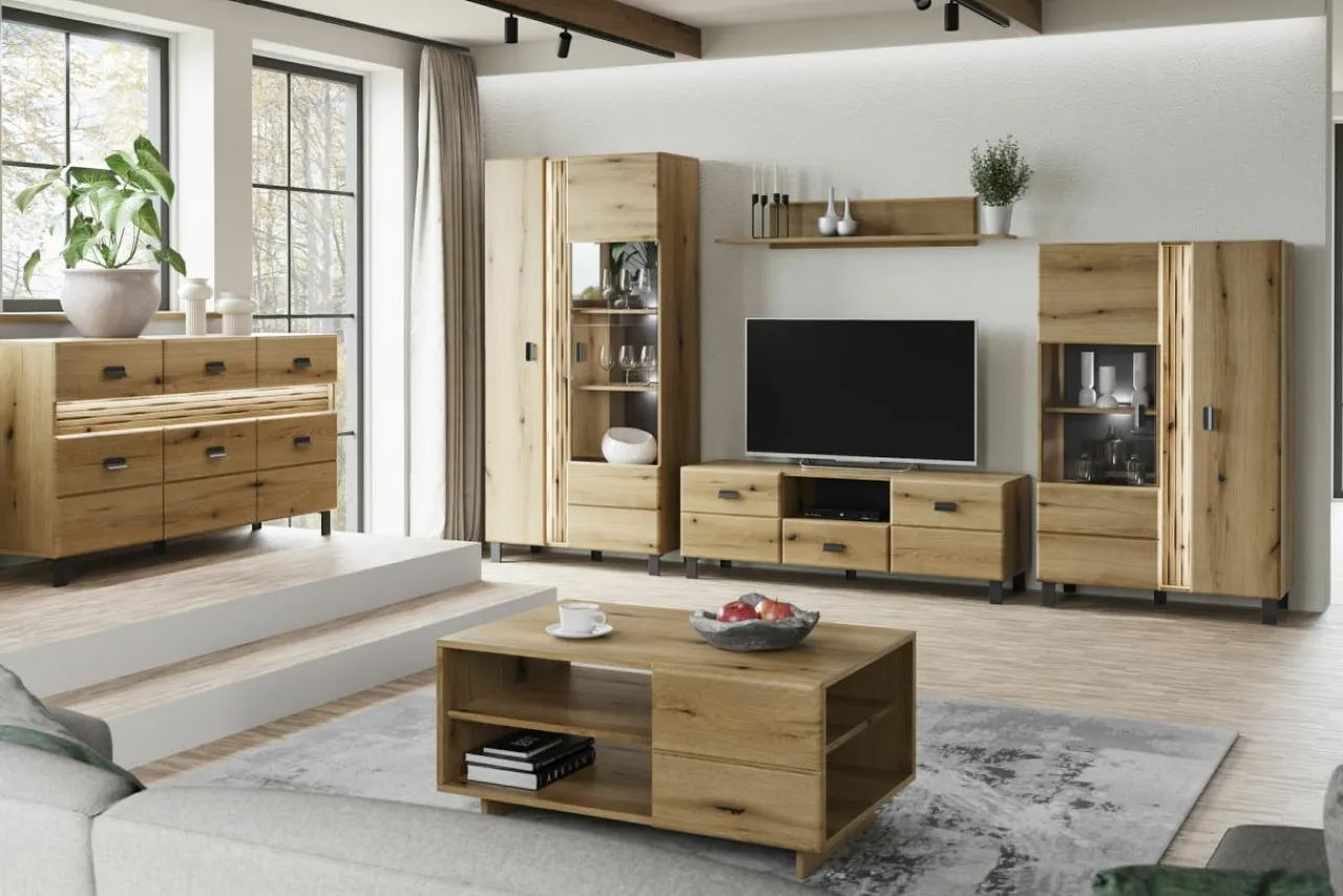 - Jasny kolor i wyraźny rysunek drewna sprawiają, że meble dobrze zaprezentują się w nowoczesnym wnętrzu.