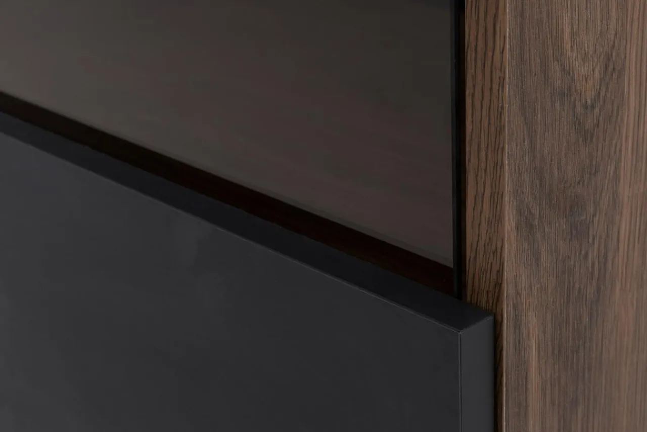 - Takie połączenie kolorów – dąb charleston z czarną barwą – pasuje do nowoczesnego wnętrza, które nie unika kontrastów.