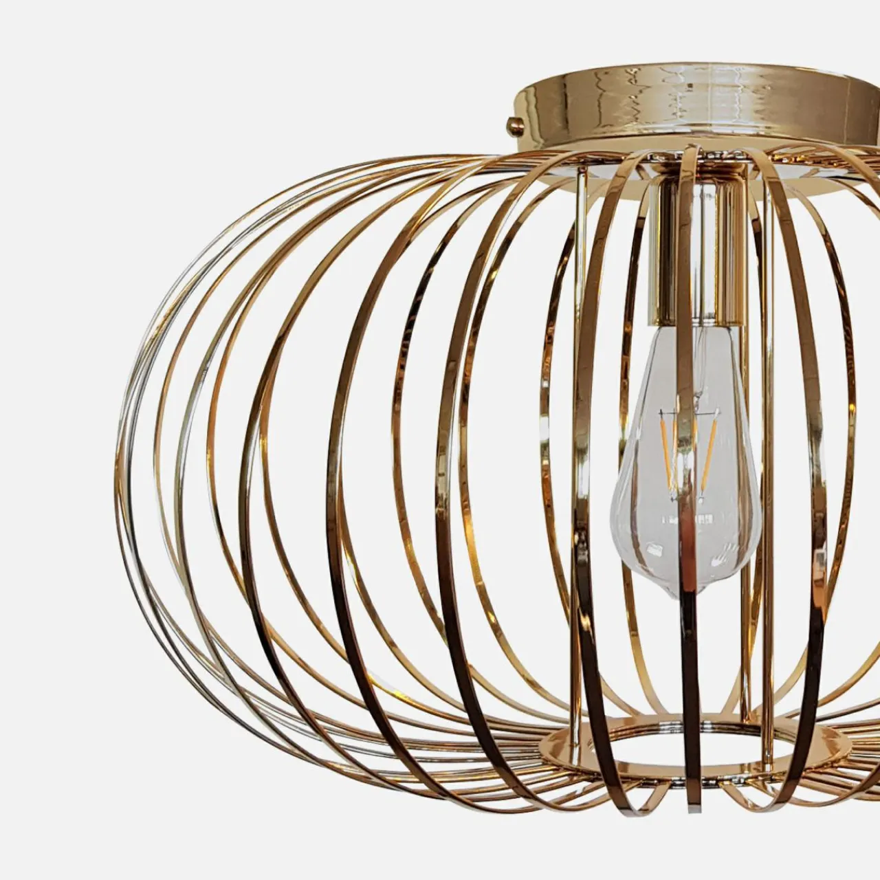 - Ozdobny klosz sufitowego modelu GLOBE został wykonany z doskonale dopasowanych do siebie metalowych elementów, które układają się w owalny kształt.