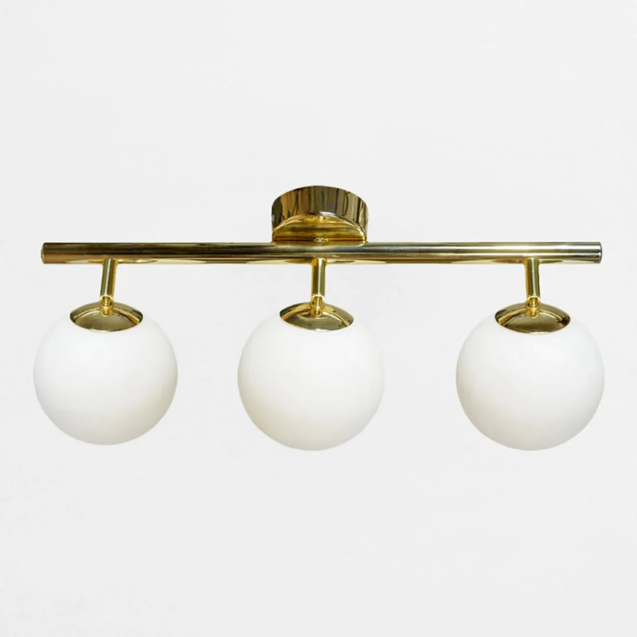 Złota kolorystyka podstawy oraz zwieńczenie w postaci kulistych, mlecznobiałych kloszay w cudowny sposób lawiruje pomiędzy nowoczesnym designem, a zachowawczą formą.