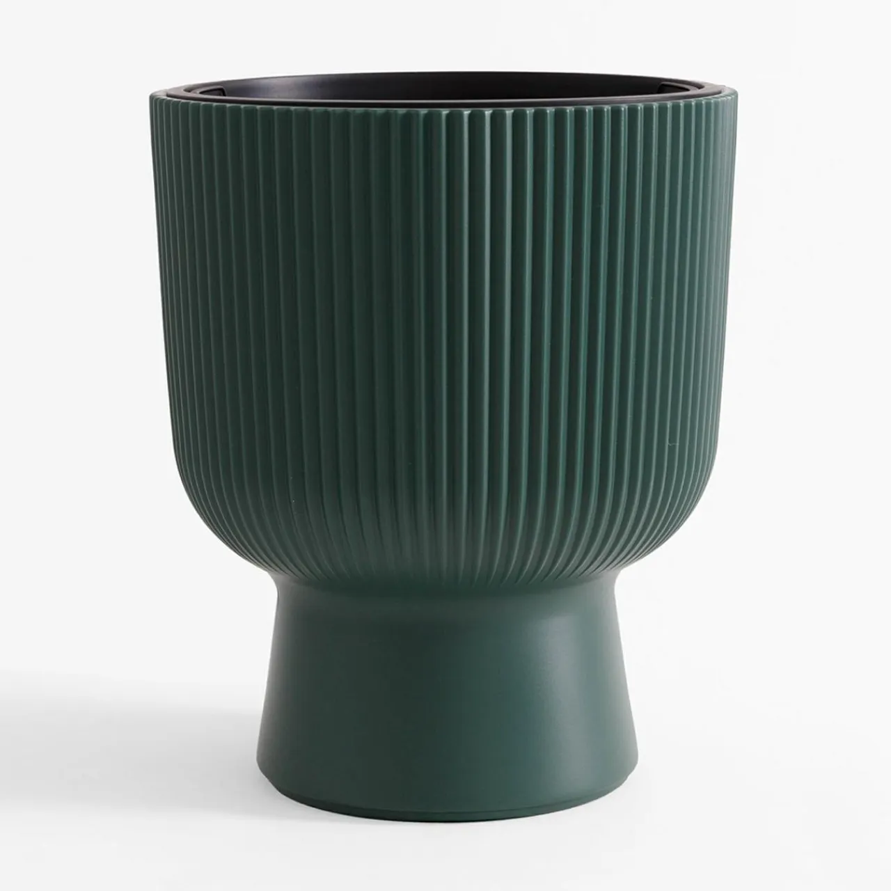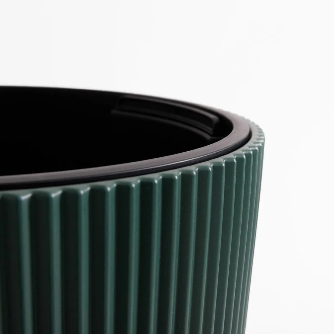 Doniczka posiada wyjmowany wkład z uchwytami w czarnym kolorze.