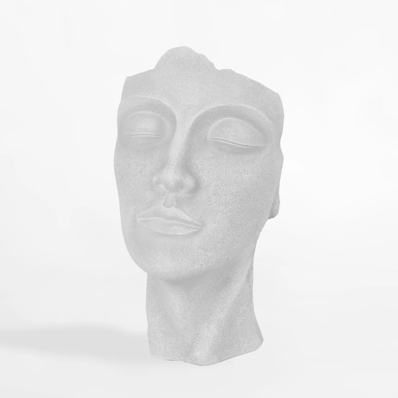 Dodaj świeżości i subtelnego stylu do swojego wnętrza lub ogrodu dzięki białej donicy w kształcie twarzy. Jej wyjątkowy design i kolor sprawiają, że doskonale wpisuje się w nowoczesne i minimalistyczne aranżacje.