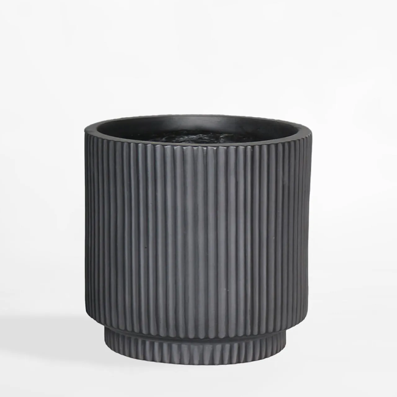 Donica ryflowana o wymiarach 30x30x30 cm w kolorze czarnym to elegancki element, który podkreśli nowoczesny styl przestrzeni. Jej ryflowana powierzchnia i proporcjonalny kształt sprawiają, że prezentuje się świetnie zarówno w domu, jak i w ogrodzie.
