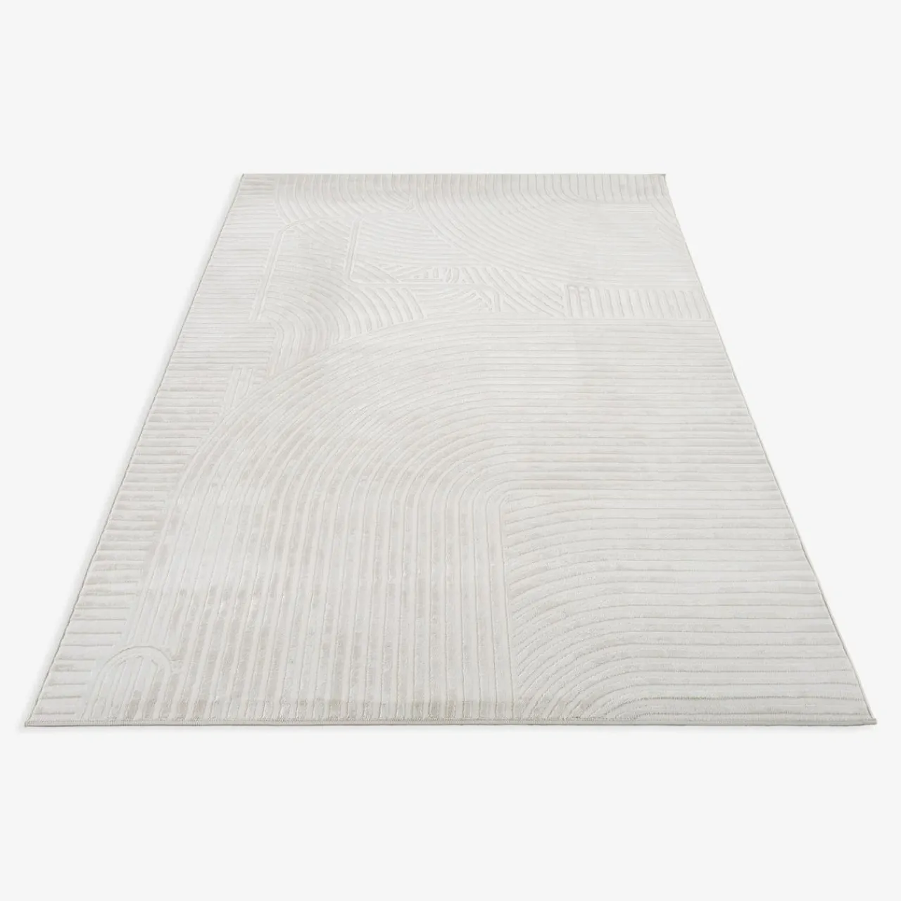 Szukasz dywanu, który doskonale skomponuje się ze stylem nowoczesnym we wnętrzu? Wybierz kremowy dywan MODICA z geometrycznym wzorem 3D. Wprowadzi do pomieszczenia atmosferę przytulności.