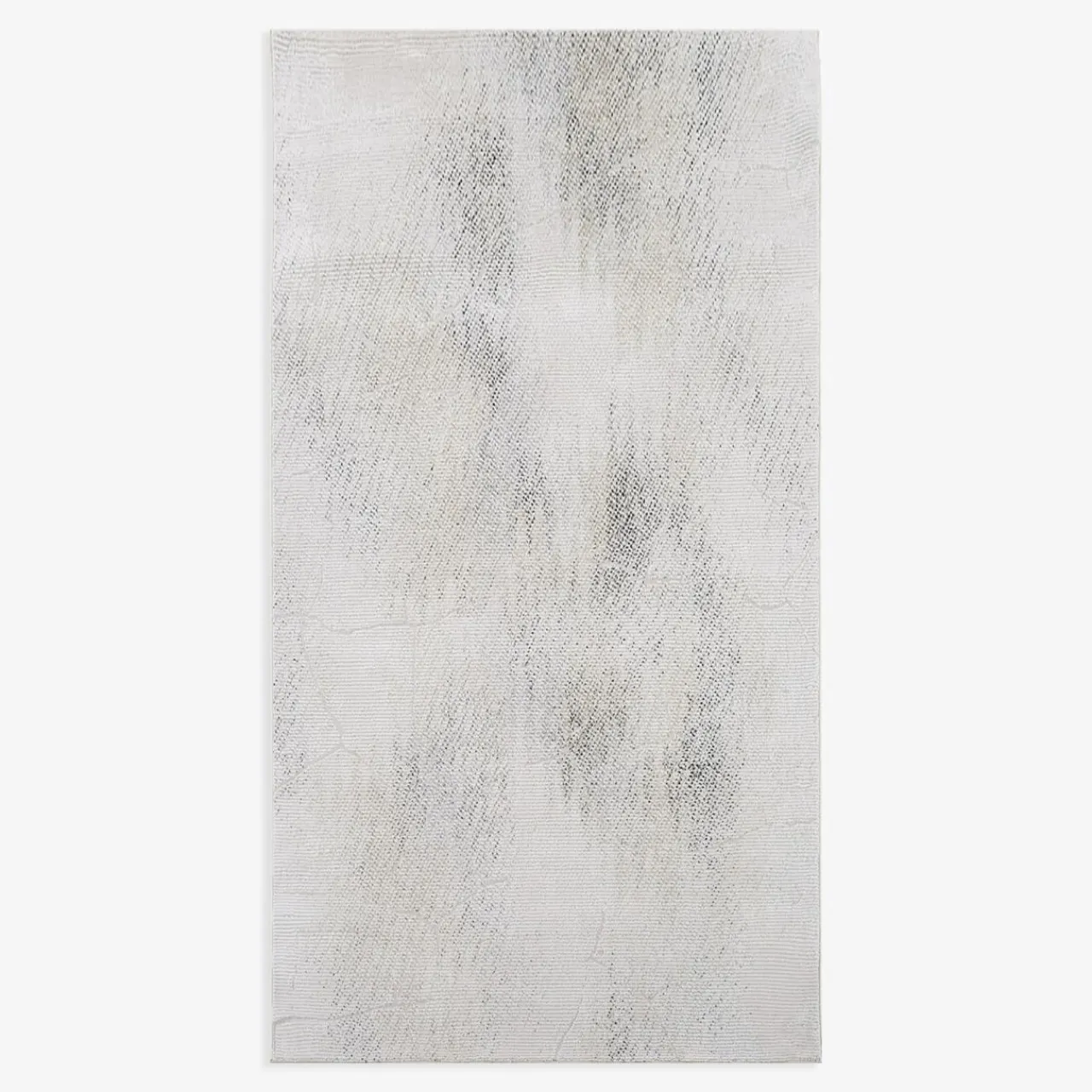 - W abstrakcyjnym wzorze dywanu przeplatają się kolorystyczne wątki kremu i beżu, gdzieniegdzie poprzeplatane plamkami czerni i brązu. Miejscami wzór dywanu przywodzi na myśl obraz spękanej ziemi lub skały.