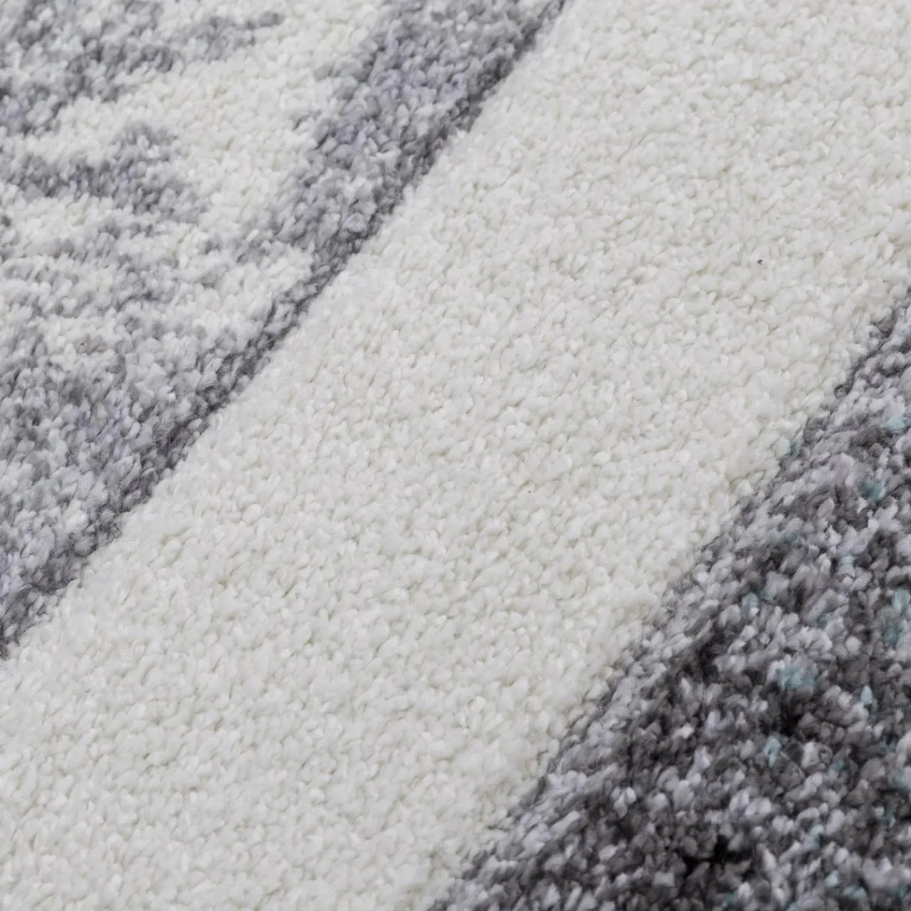Wśród szarych i białych wzorów dostrzeżesz subtelne, turkusowe włókna.