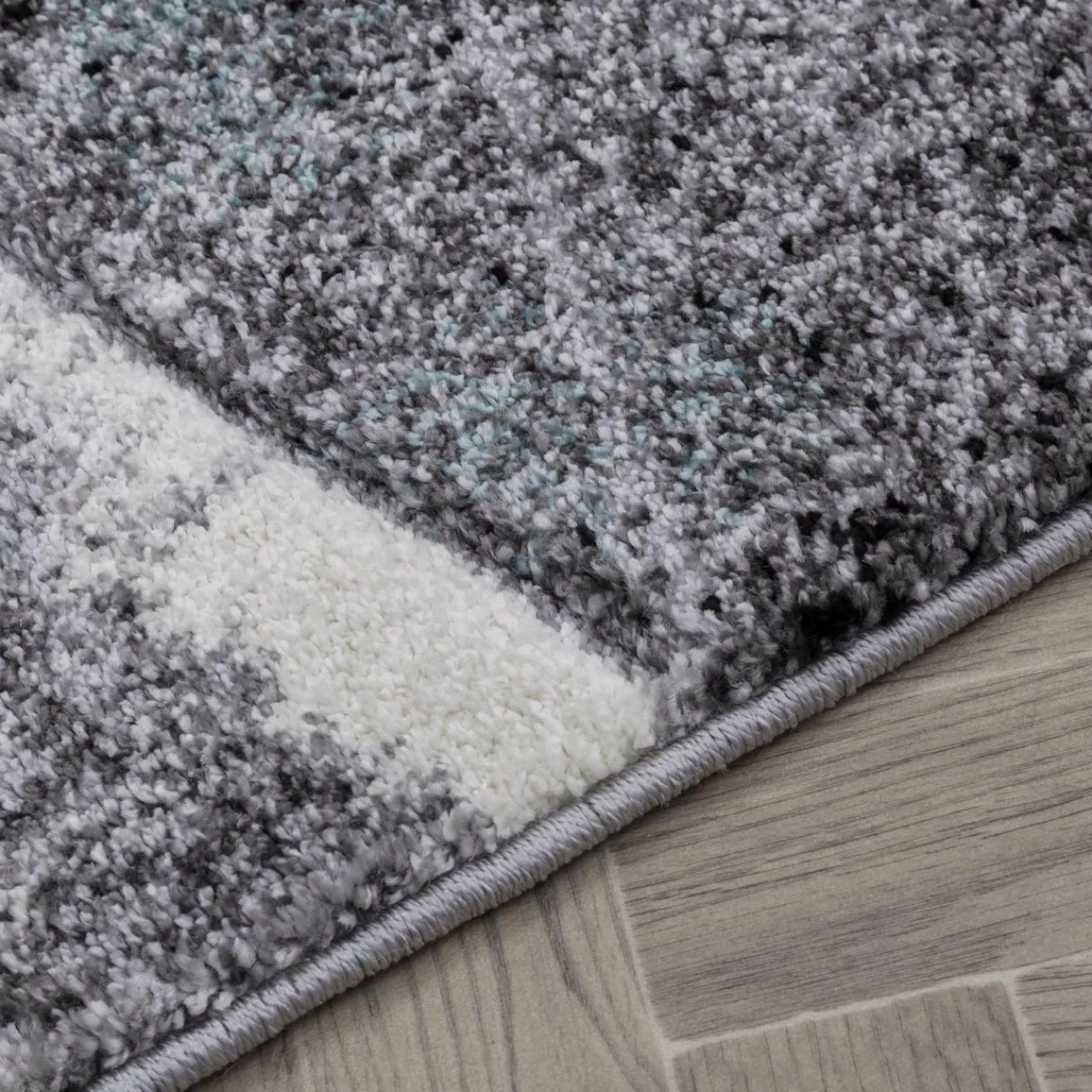 Wśród szarych i białych wzorów dostrzeżesz subtelne, turkusowe włókna.