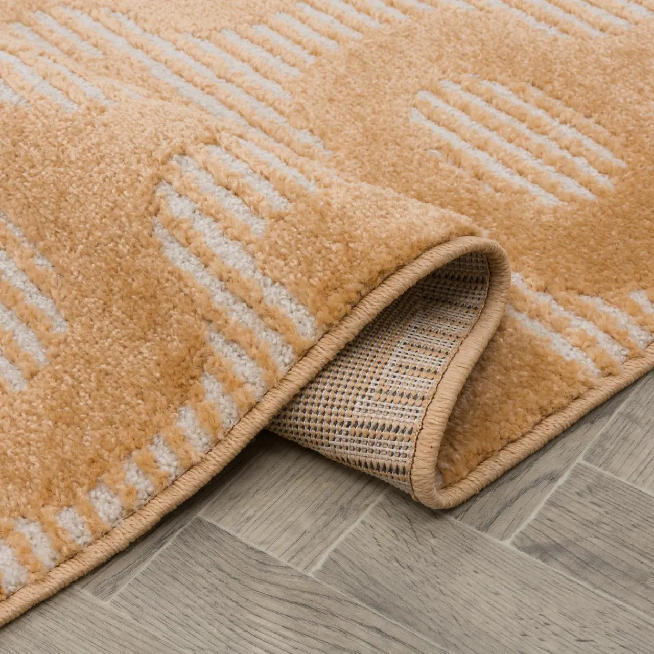 - Dywan z geometrycznym wzorem stanowi dopełnienie aranżacji i nadaje pomieszczeniu przytulności o eleganckim charakterze.