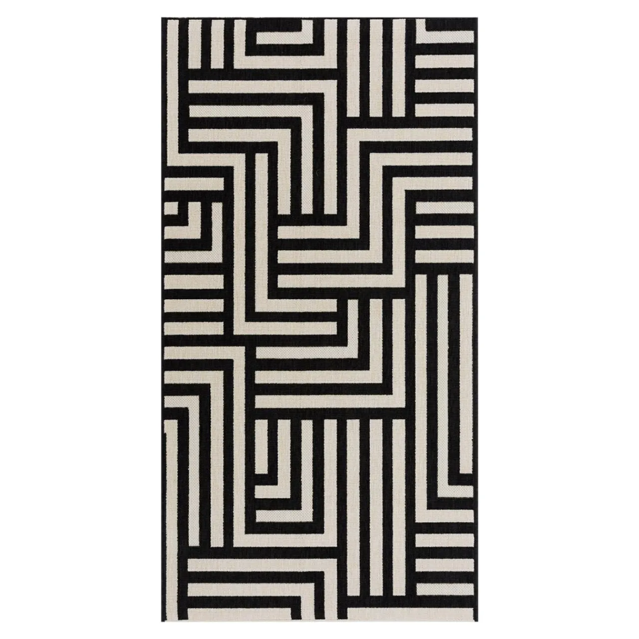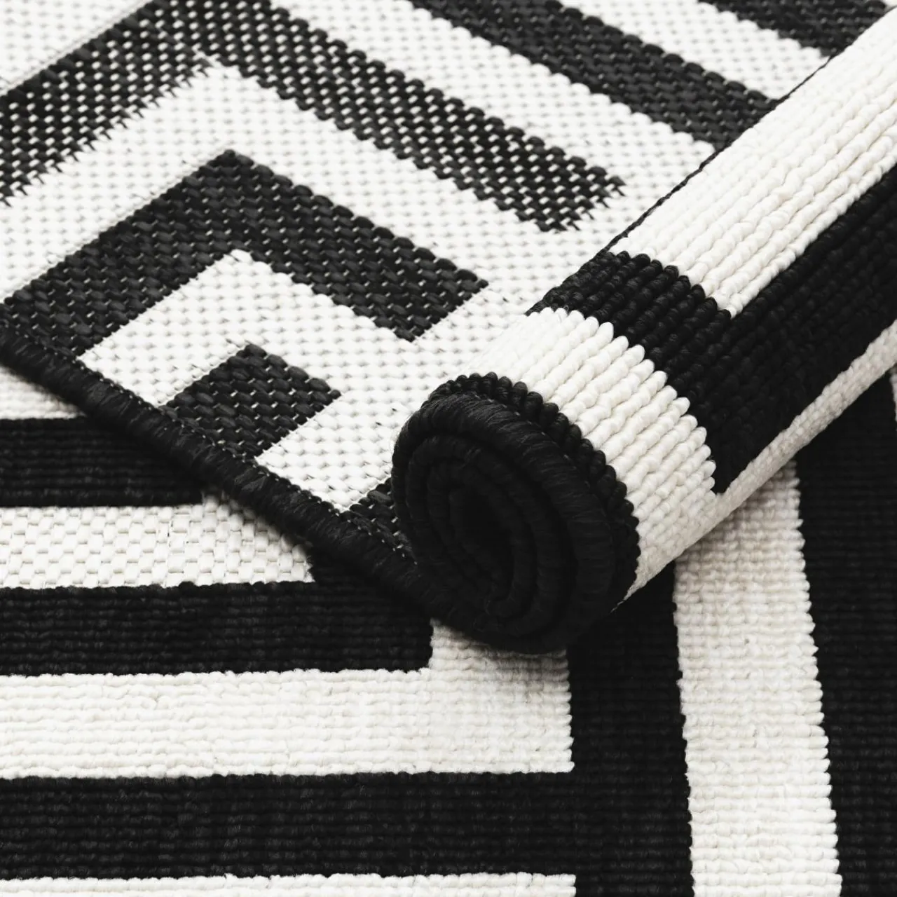 Jak sprawić, żeby taras wyglądał bardziej nowocześnie? Udekoruj go dywanem STIARNA z geometrycznym, czarnym wzorem.