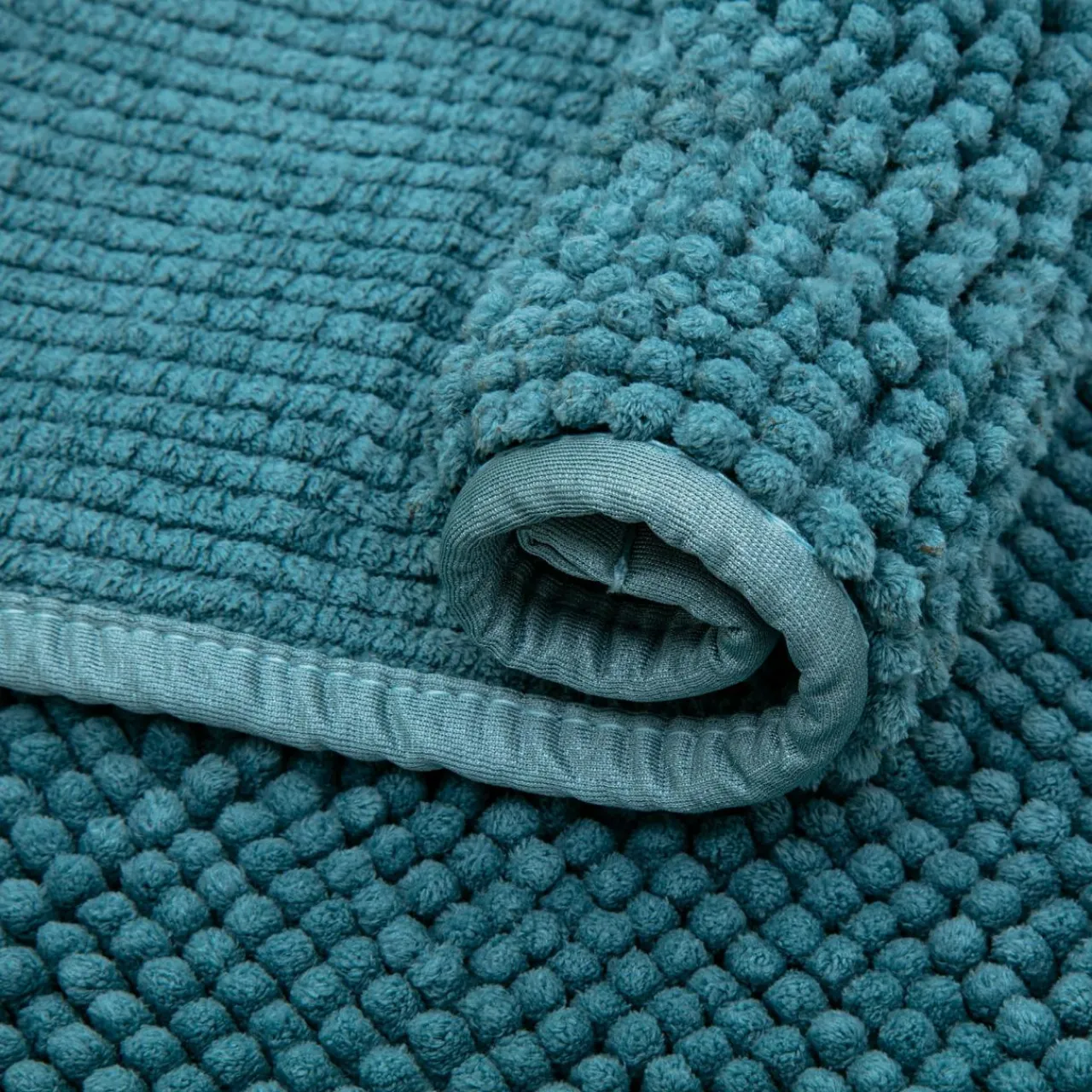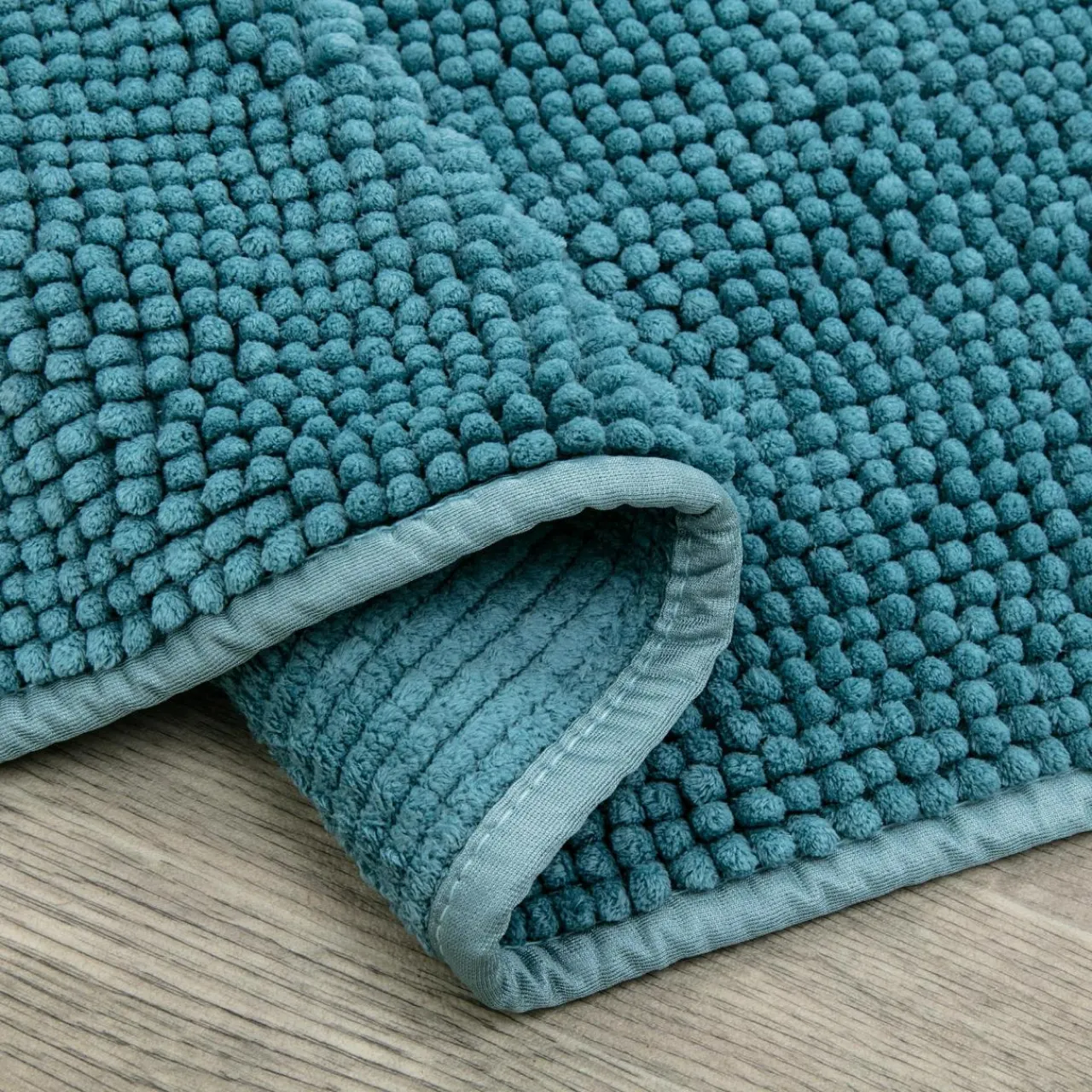 Turkusowy kolor dywanika łazienkowego TOLEDO ożywi szarości i pięknie podkreśli białe odcienie.
