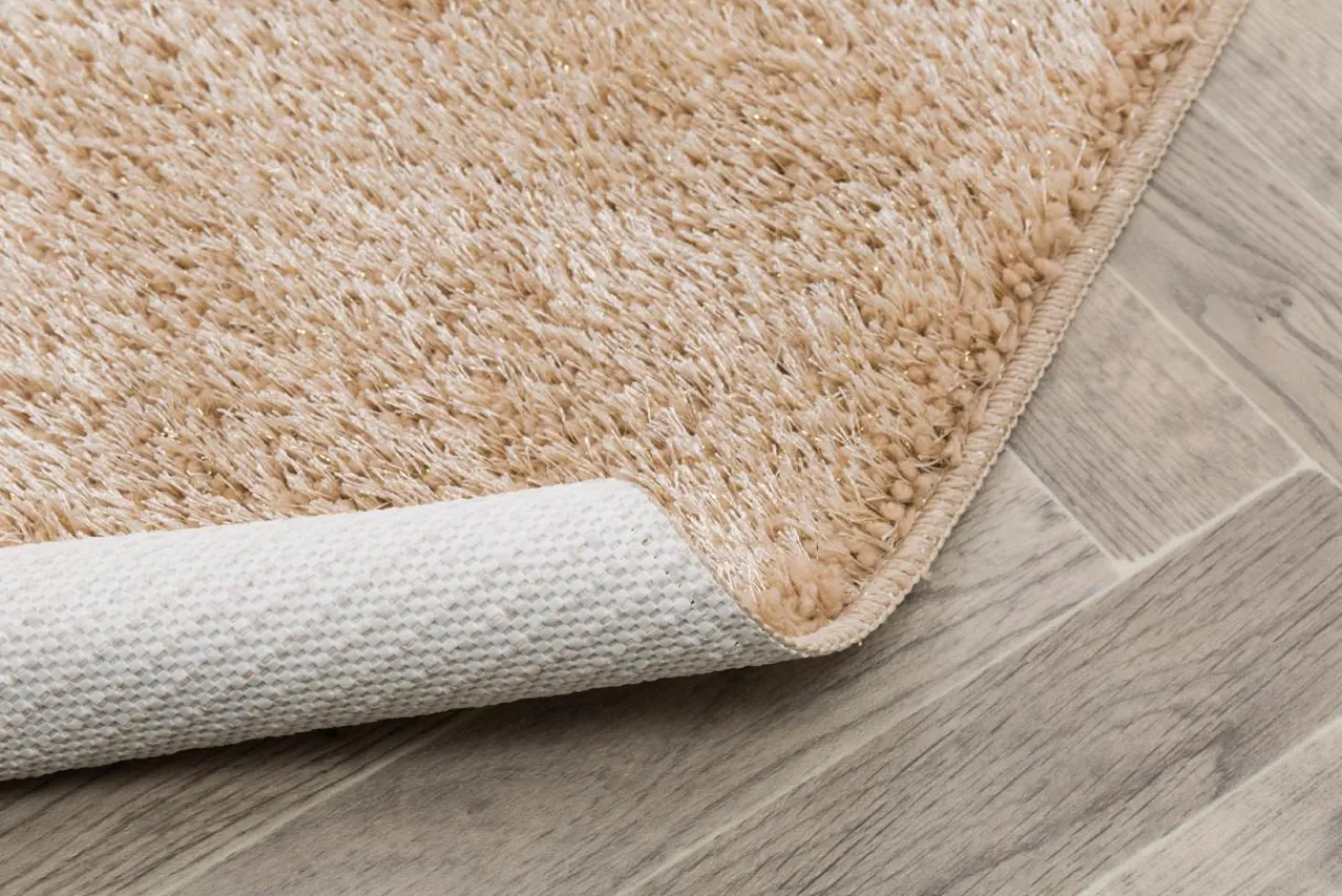 - Beżowy dywanik pozwoli wprowadzić do wnętrza przytulną atmosferę.