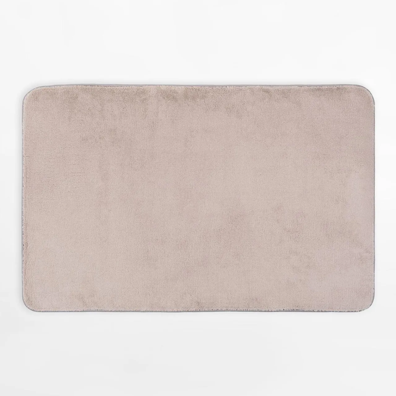 Uniwersalny dywanik w kolorze ciemnobeżowym będzie pasował niemal do każdej aranżacji łazienki.