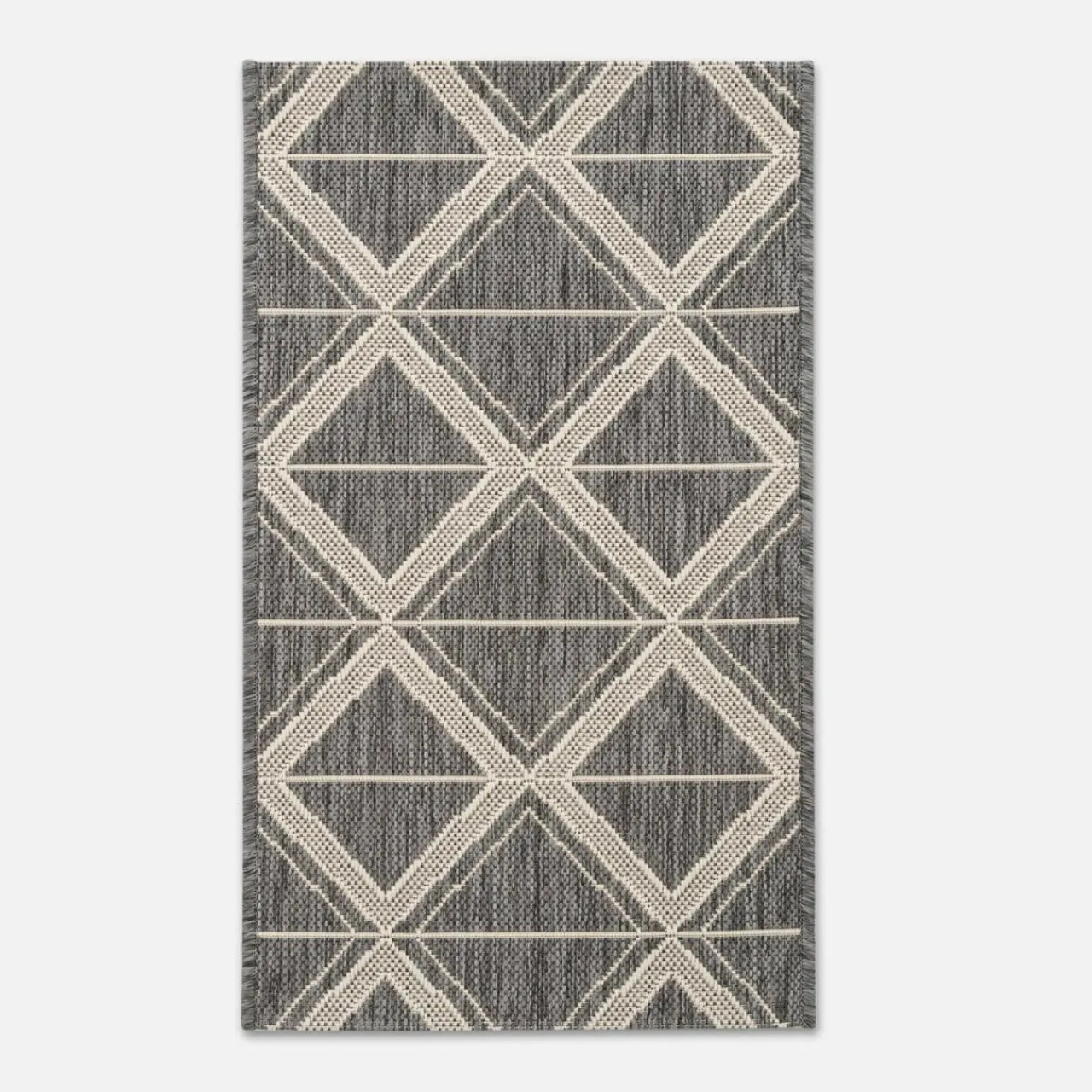 Szukasz dywanika, który odnajdzie się w surowym wnętrzu? Wybierz szary model JUTA z geometrycznym wzorem. Doda smaku loftowej stylizacji.