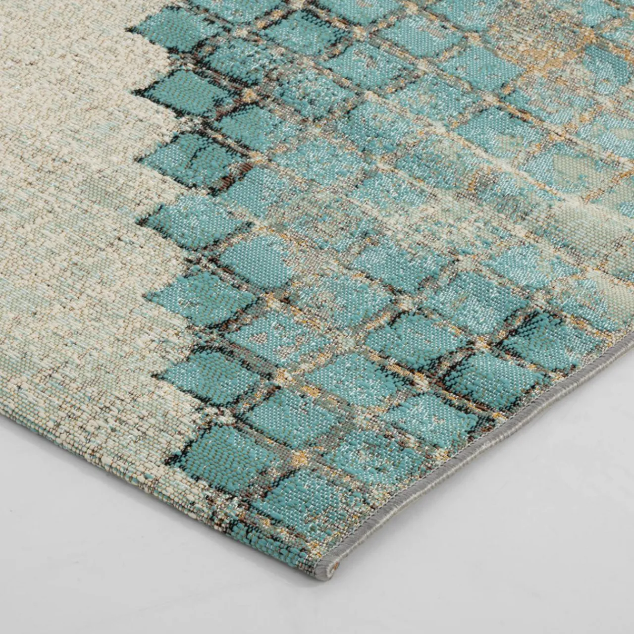 Szukasz dywanika pod stolik kawowy do salonu? A może rozglądasz się za stylowym dywanikiem do sypialni? Bez względu na to, czy planujesz rozłożyć go w salonie, czy w sypialni, szaro-turkusowy model PATCHWORK MALTA z geometrycznym wzorem z pewnością przypadnie Ci do gustu.