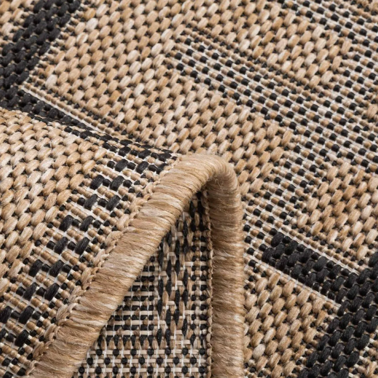Dywan JUTA to stylowy dodatek, który przyciąga uwagę nowoczesnym wzornictwem. Połączenie ciemnej bazy z jasnymi, przecinającymi się liniami nadaje wnętrzu wyrazistości.