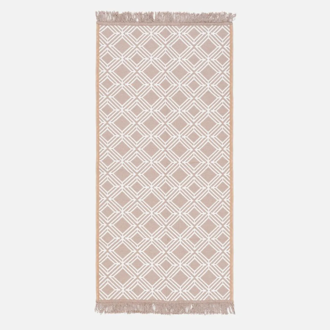 Dywan ALBORG łączy w sobie łagodne beżowe i brązowe odcienie, dlatego świetnie sprawdzi się w boho, japandi i nowoczesnych wnętrzach o jasnym wystroju. Geometryczny wzór przełamie monotonię aranżacji.