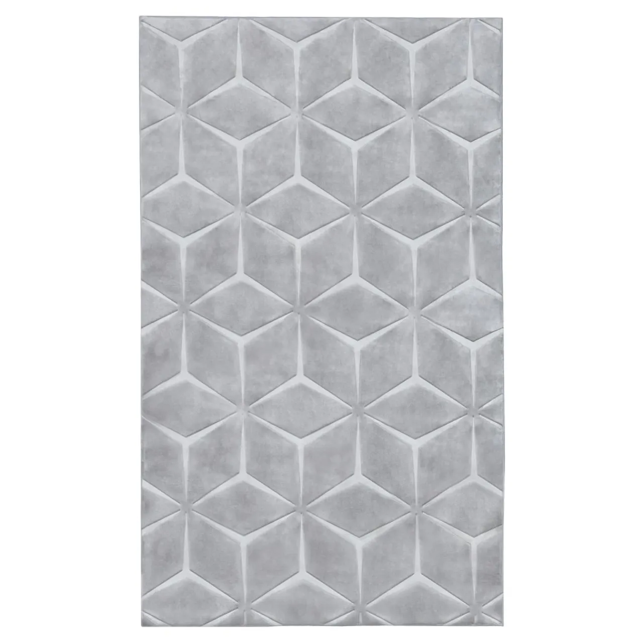 - Runo dywanu jest dwupoziomowe, dzięki temu powstaje ciekawy efekt 3 D. Geometryczny wzór jest wytłoczony w welurze. Światło będzie załamywało się na jego powierzchni w intrygujący sposób.