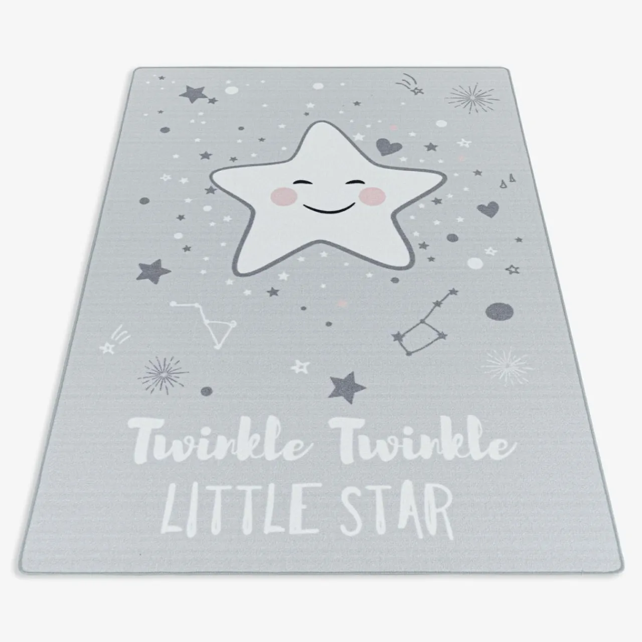 Twoje dziecko marzy o tym, aby przenieść się do bajkowego świata? Teraz to możliwe. Zdecyduj się na zakup szarego dywanu PLAY z motywem uśmiechniętej gwiazdki. Uroczy napis „Twinkle twinkle little star” odwołuje się do słów kołysanki, która w polskiej wersji językowej brzmi: „Mrugaj, mrugaj gwiazdko ma…”