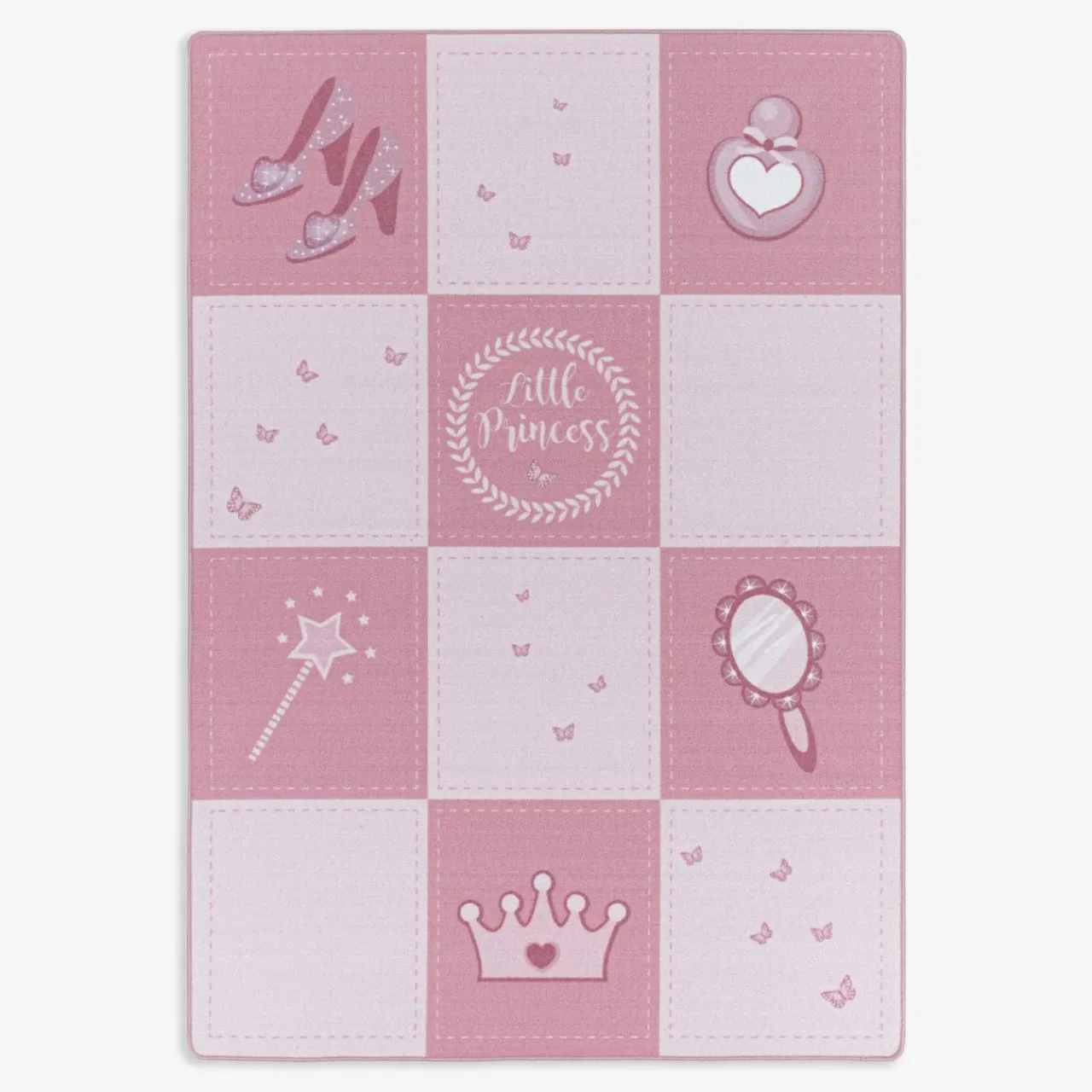 Twoje dziecko marzy o tym, aby przenieść się do bajkowego świata? Teraz to możliwe. Zdecyduj się na zakup różowego dywanu PLAY. Wzór przedstawia atrybuty charakterystyczne dla księżniczki: koronę, lusterko, pantofelki, flakon perfum, różdżkę. W takim otoczeniu Twoja latorośl będzie doświadczać pozytywnych uczuć i wrażeń.