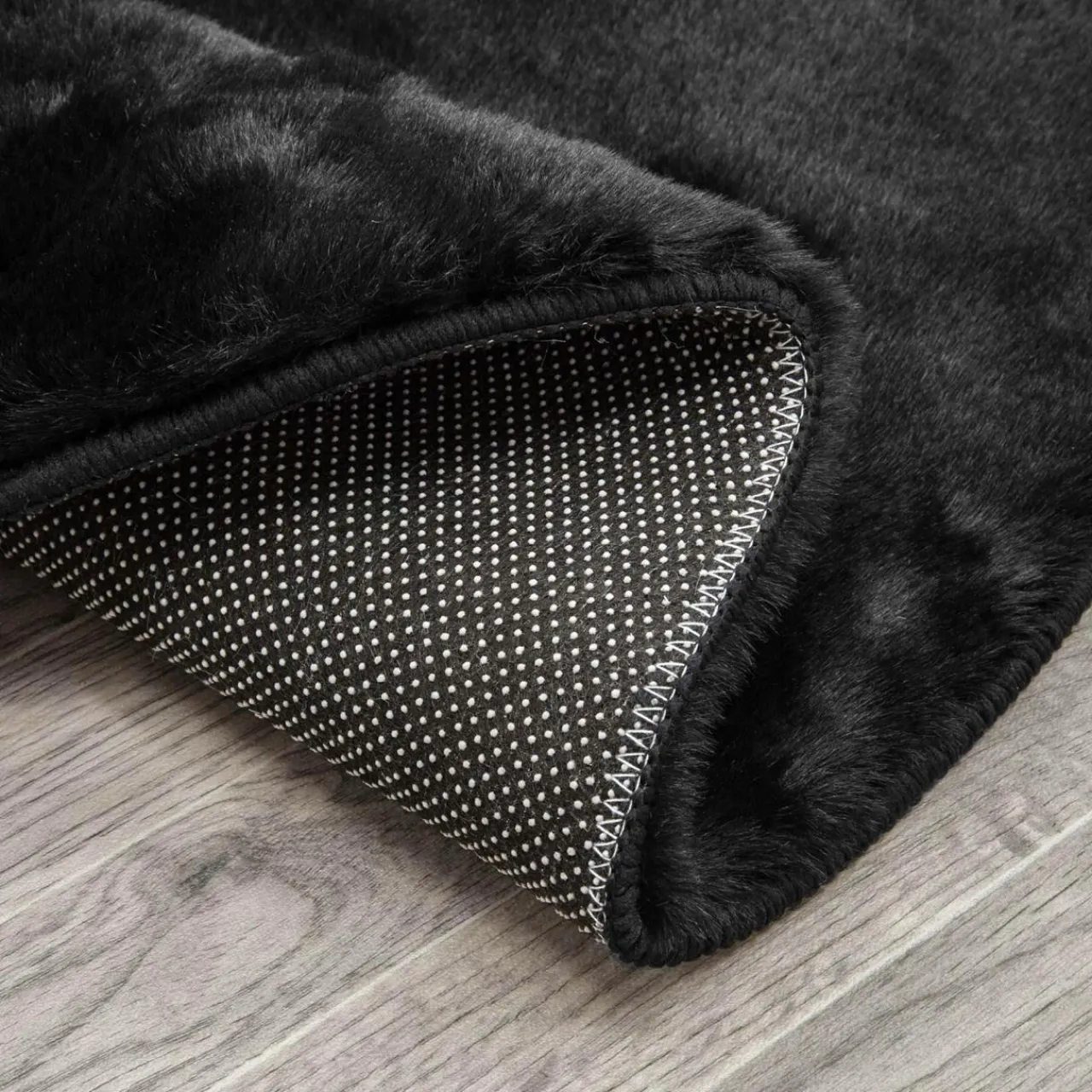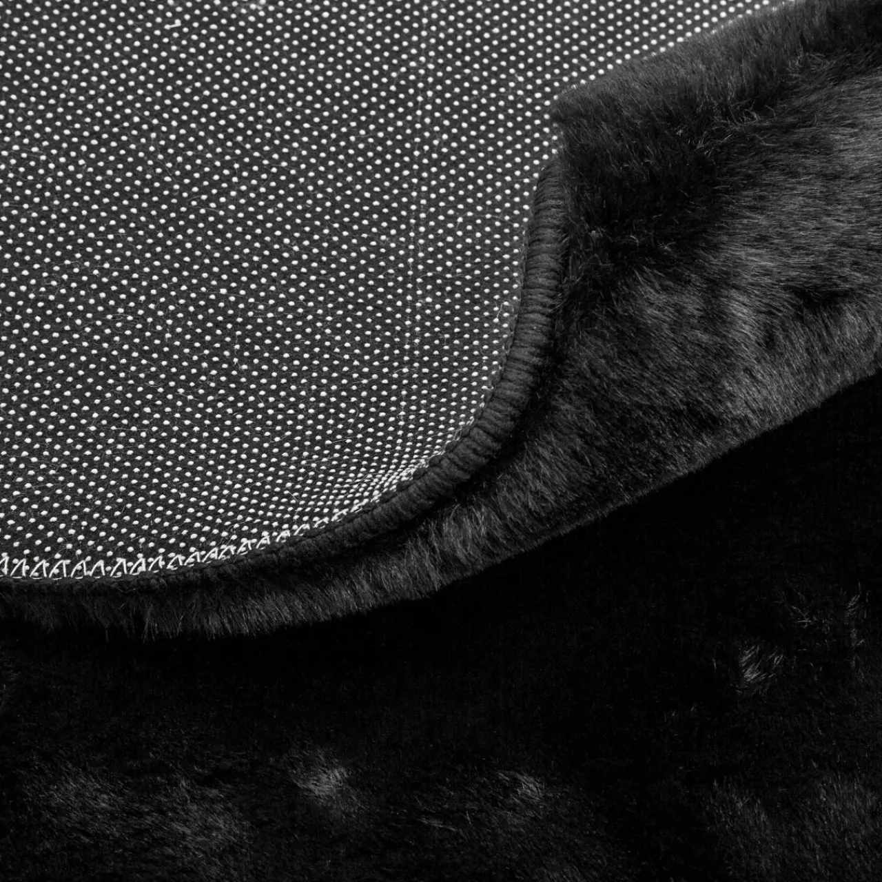Chcesz udekorować salon lub sypialnię czymś wyjątkowym? Czarny, okrągły dywan RABBII położysz przy fotelu, stoliku kawowym lub tuż przy łóżku – przyjemnie odizoluje Cię od zimnej podłogi.