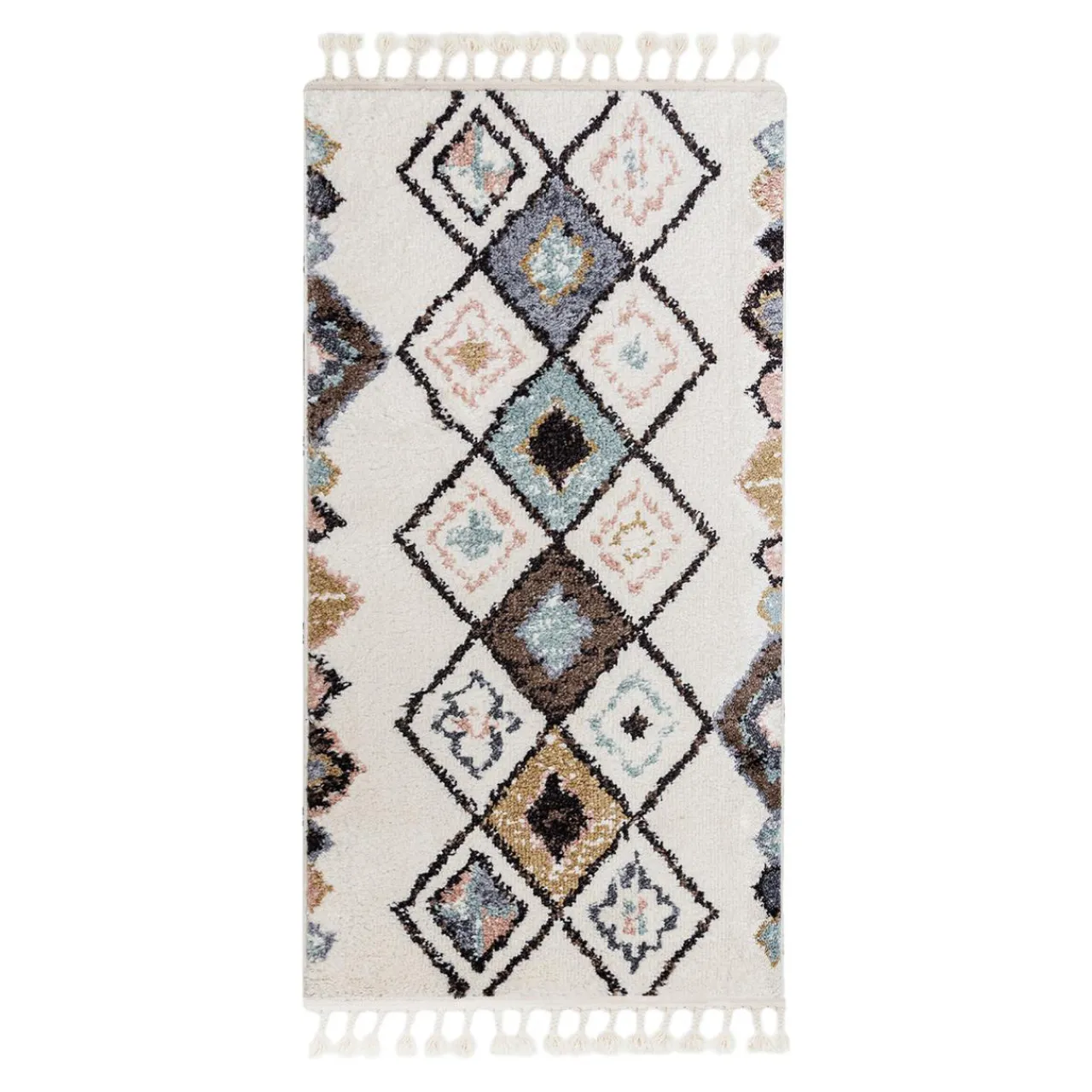 Beżowy dywan ALASKA z wzorem w romby o różnorodnej, dobrze dobranej kolorystce uatrakcyjni Twoją przestrzeń.