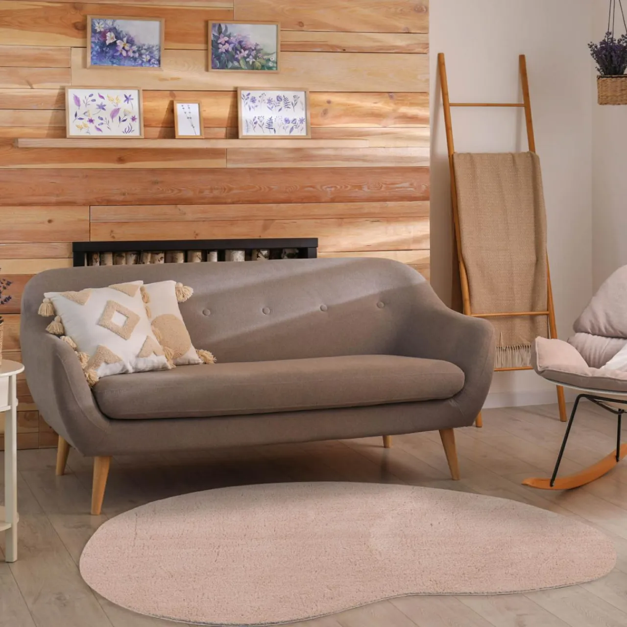 - Beżowy kolor dywanu świetnie podkreśli skandynawskie, minimalistyczne i nowoczesne aranżacje.