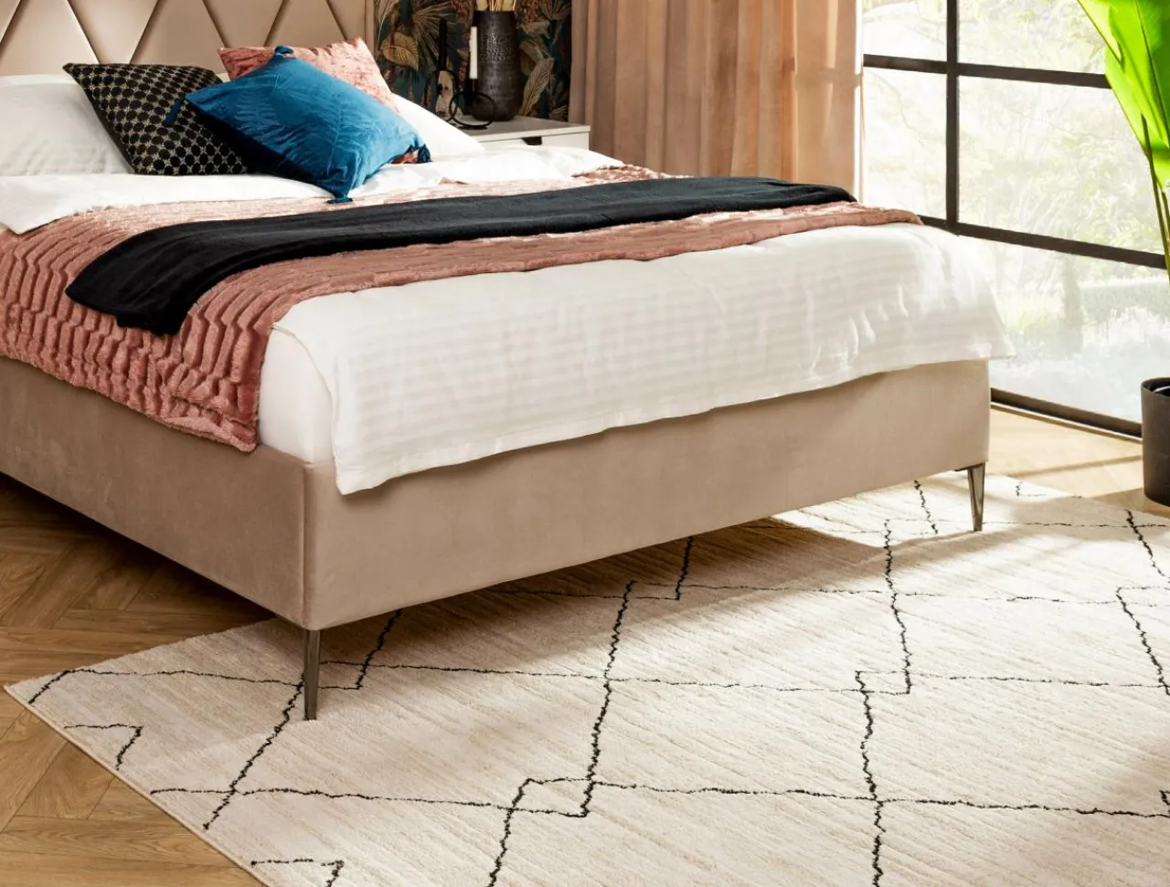 Dywan BOHO ozdobiony jest minimalistycznym wzorem z motywem rombu.