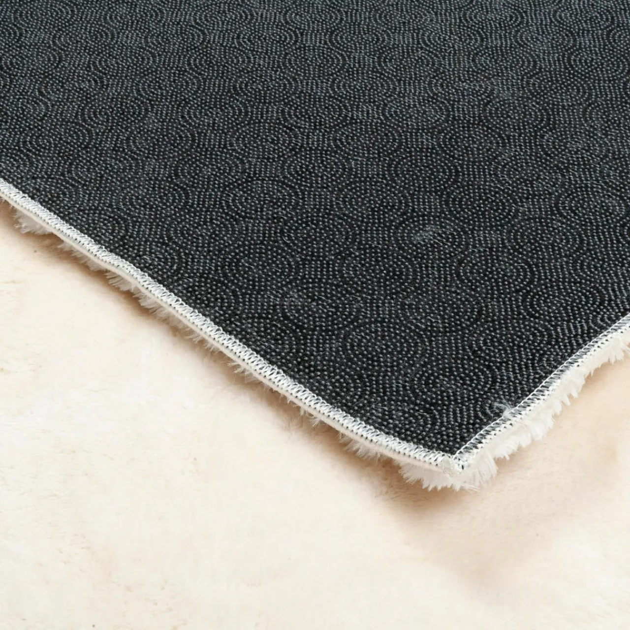 - Antypoślizgowe tworzywo na spodzie dywanu sprawia, że stabilnie przylega on do podłogi.