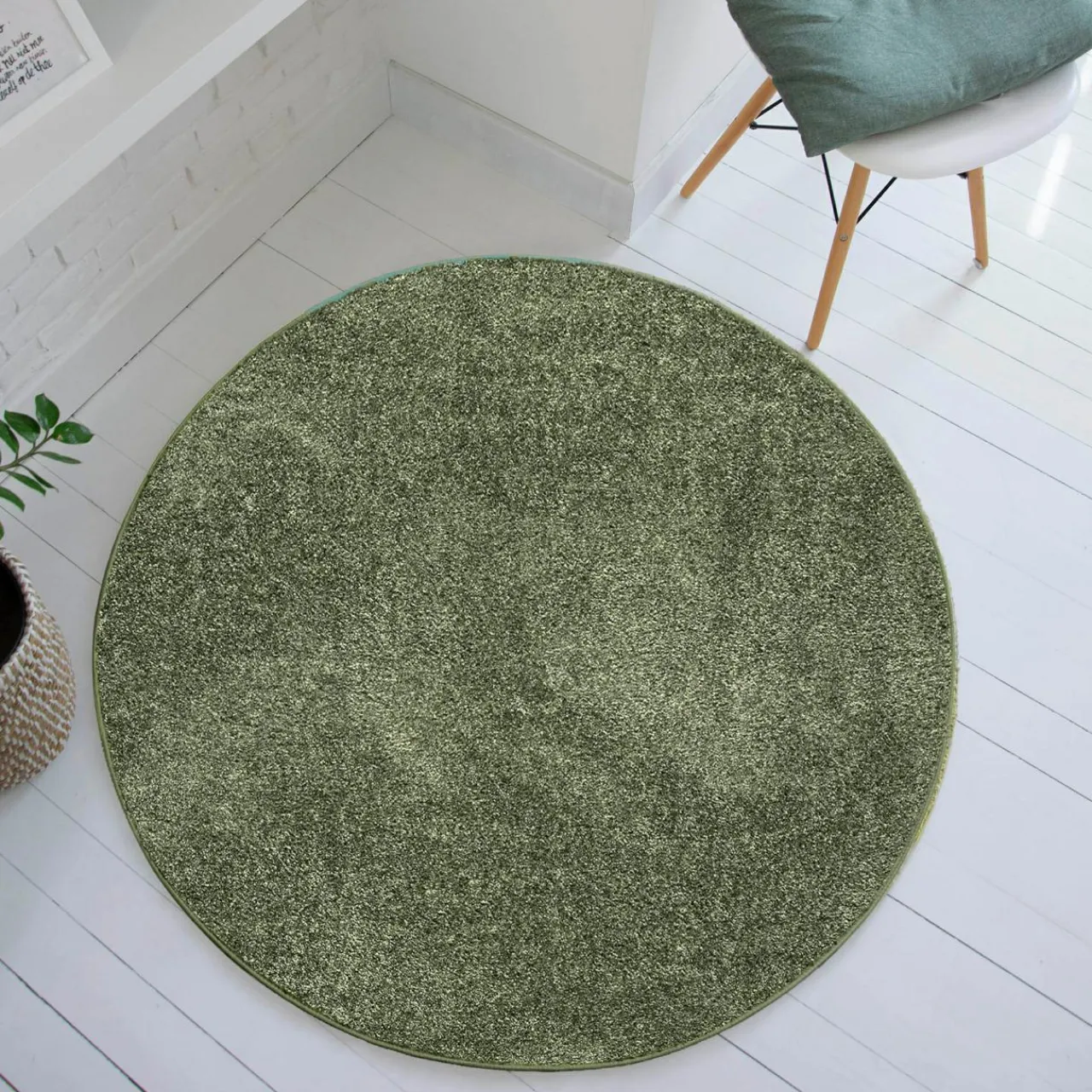 Szukasz dywanu, który ożywi monochromatyczne wnętrze? Wybierz okrągły model CLEVER w zielonym kolorze. Emanuje spokojem i niewymuszoną elegancją.