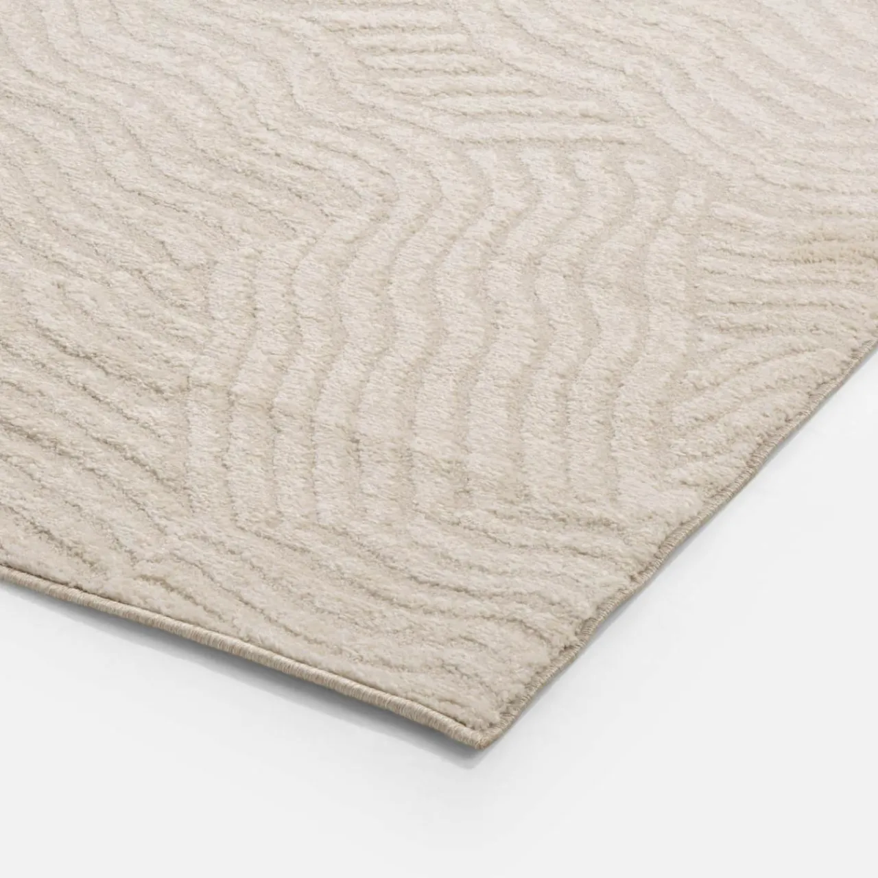 - Kremowy kolor i subtelny wzór abstrakcyjnych fal dodają wnętrzu spokoju, tworząc przyjemne otoczenie do relaksu.