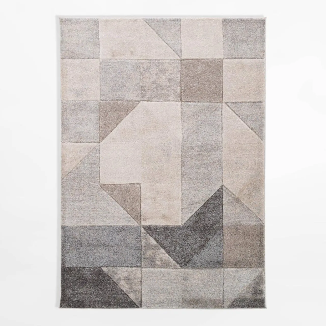 Dywan KERY sprawia, że dużo się dzieje. Geometryczny wzór w trójkąty, trapezy i prostokąty ożywi wnętrze Twojej aranżacji.