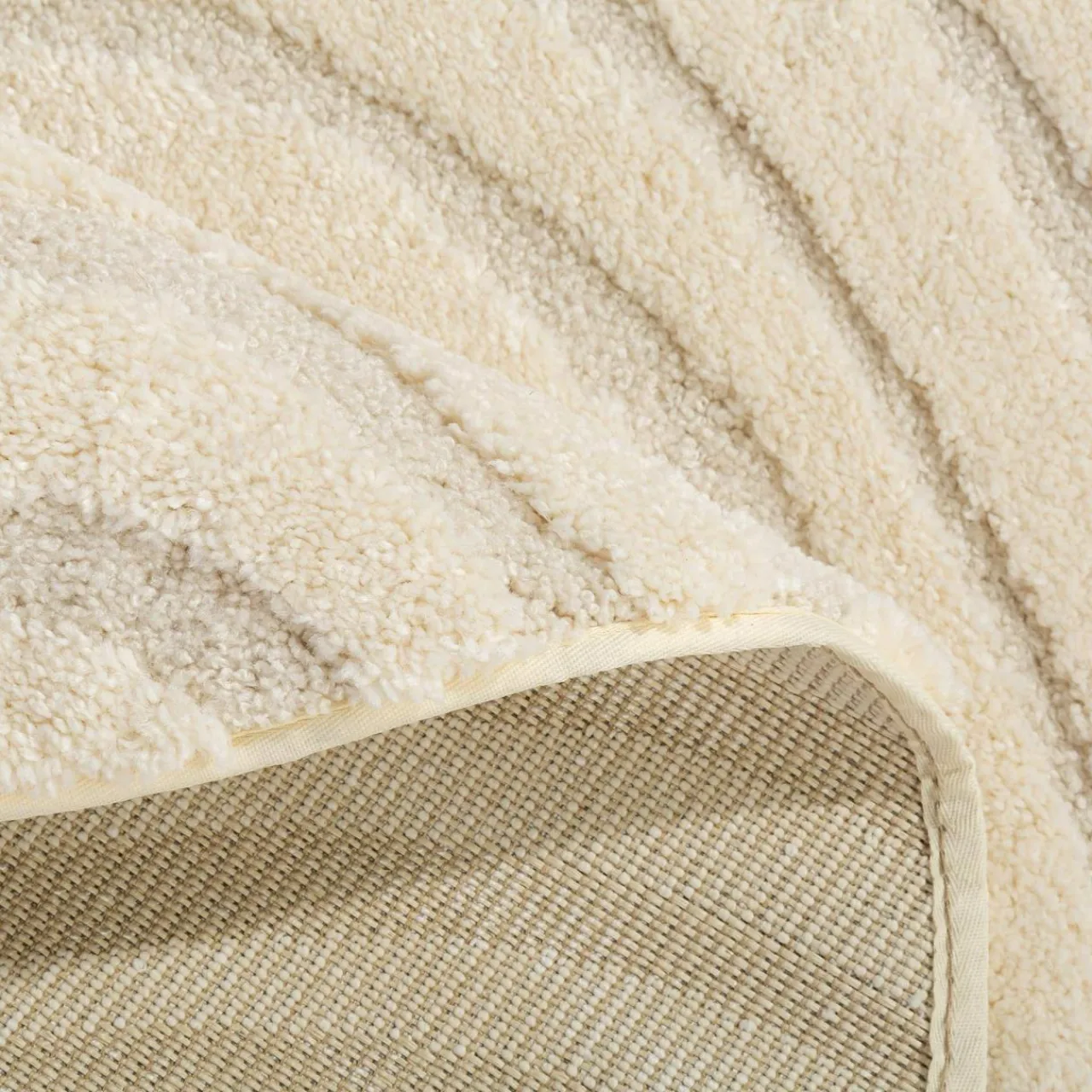 Motyw dywanu INSPIRATION odzwierciedla miękkie linie wydm widzianych z lotu ptaka, a kremowa kolorystyka nadaje wnętrzu elegancji i spokoju. Dywan współgra ze skandynawskim, boho i minimalistycznym stylem.