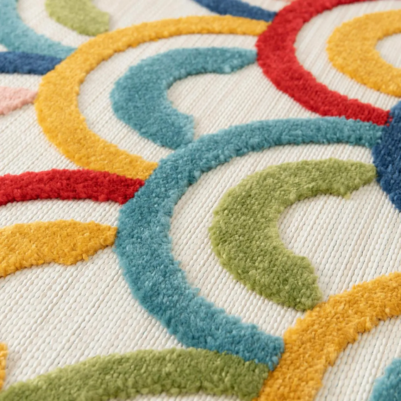 Szukasz ciekawej dekoracji, która przyciągnie Twoją uwagę i sprawi, że zmotywujesz się do działania? Nowoczesny dywan 3D PICTO w półkola spodoba się osobom, które lubią kolorowe wzory.
