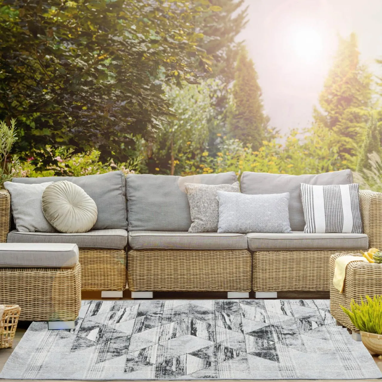 - Geometryczny wzór będący wariacją na temat trójkąta, osadzony w szarej kolorystyce, urozmaici nieco wystrój pomieszczenia. Jeśli lubisz minimalizm, ten dywan może być jedną z nielicznych dekoracji we wnętrzu.